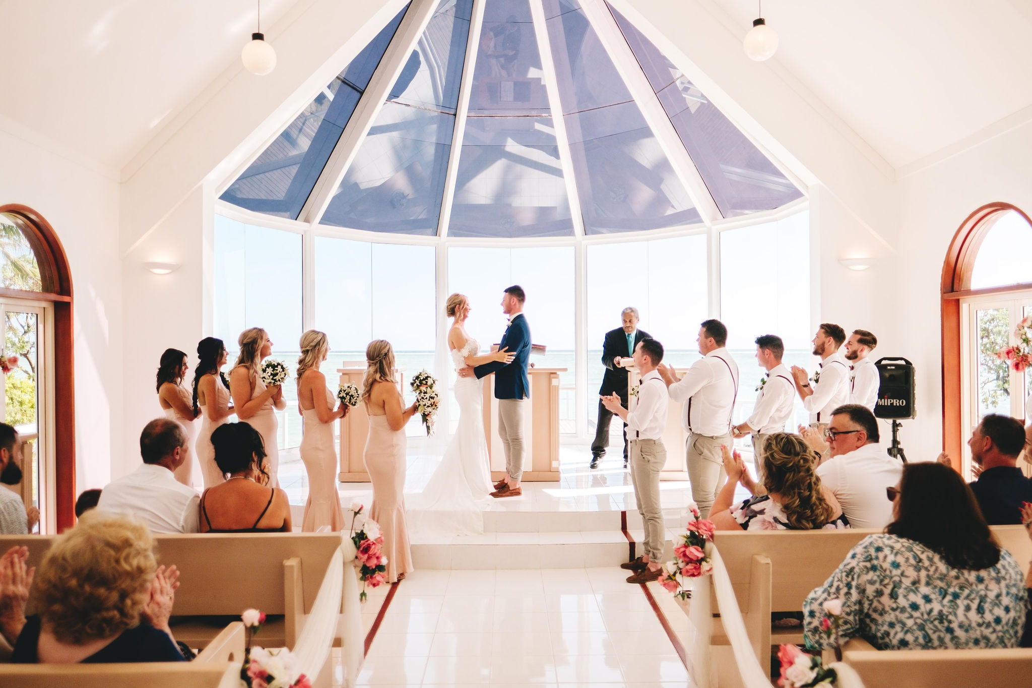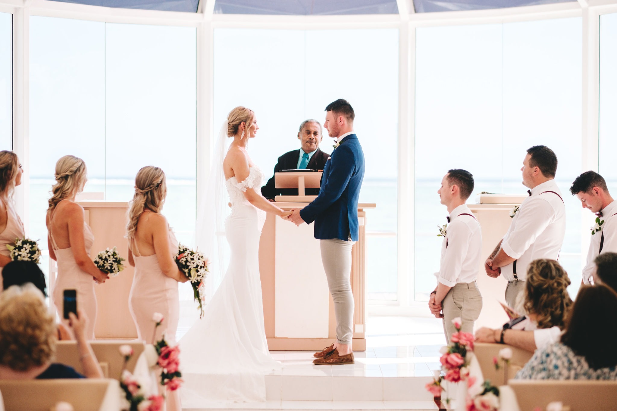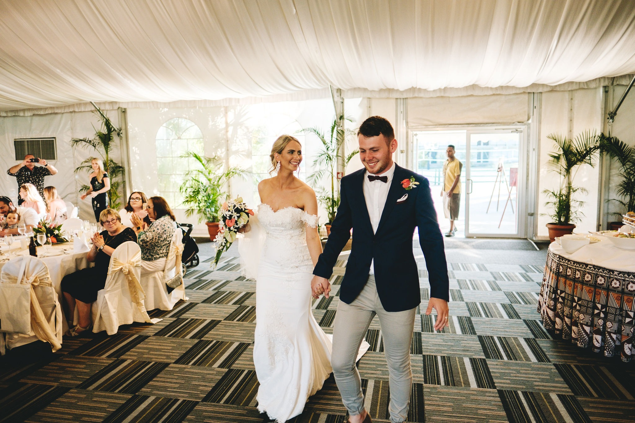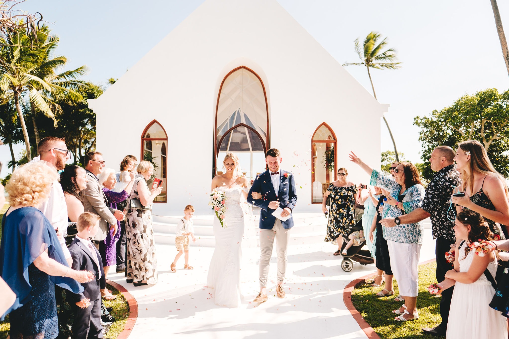 The ceremony was very relaxed and laid back. Everyone was made to feel comfortable and relaxed. We had the Fijian choir singing as I walked down the aisle – it was so beautiful, everyone shed a tear! On the way out of the chapel we had the choir and serenaders singing as we were showered with petals from the guests.