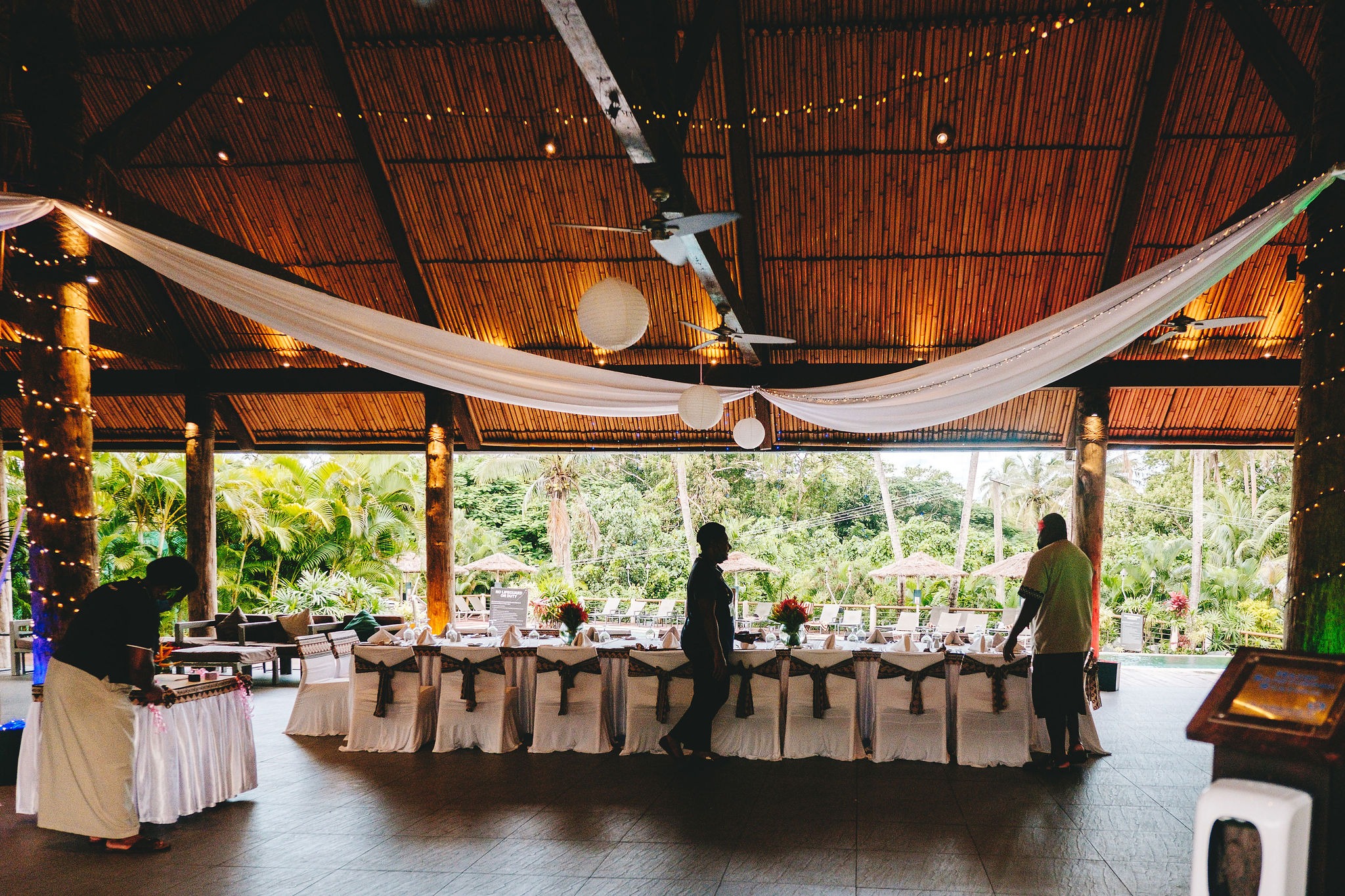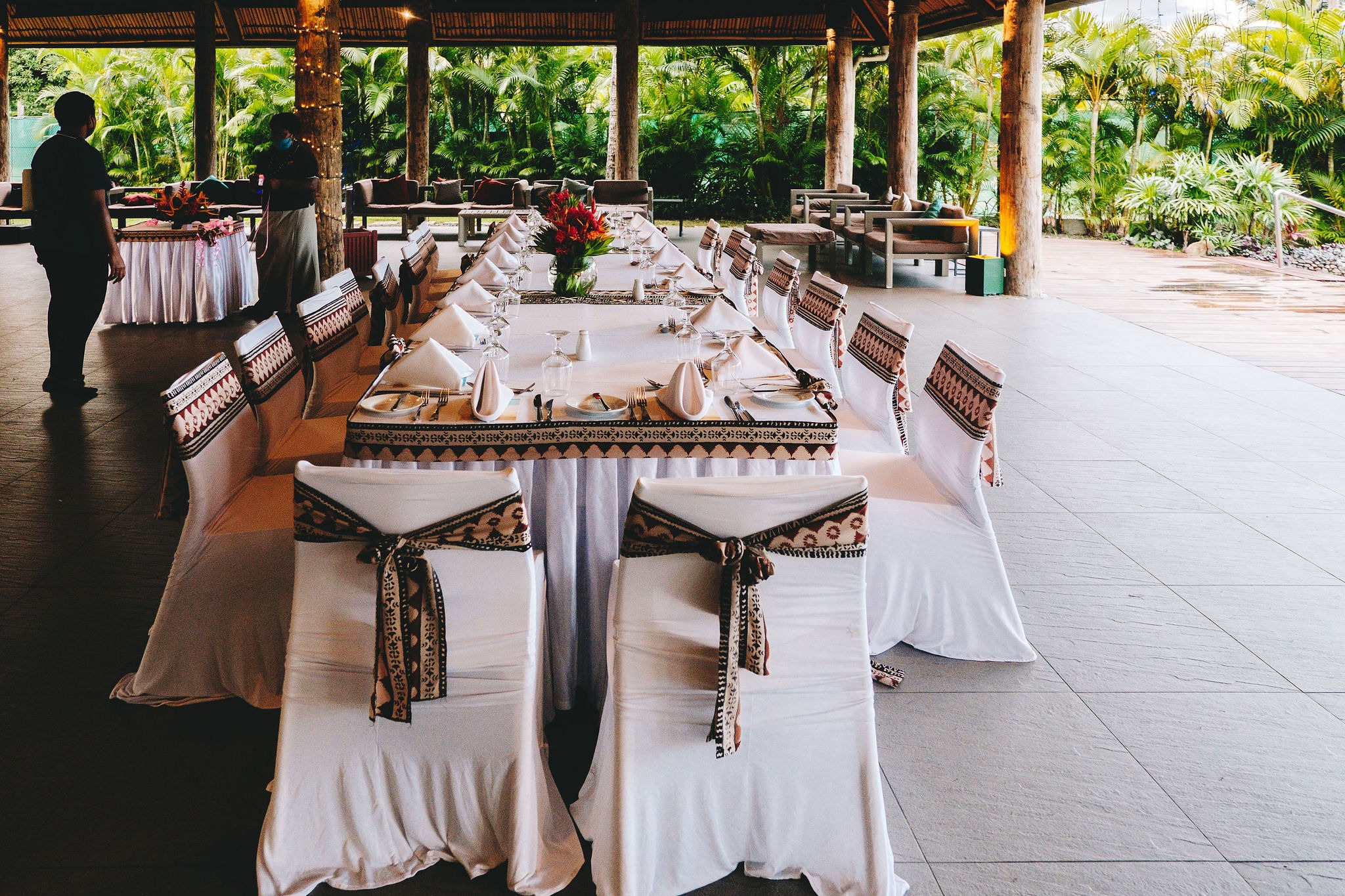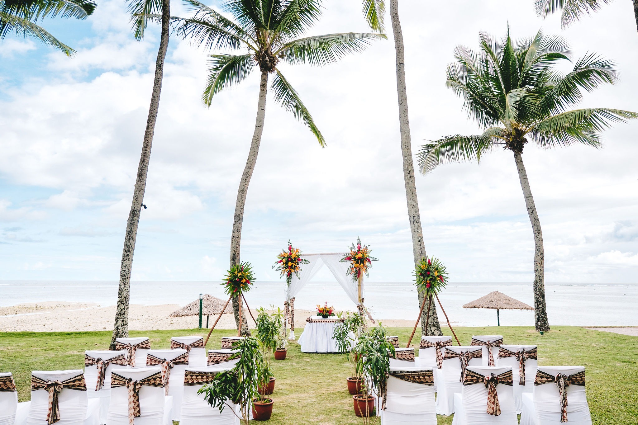 The Outrigger resort provided and set up the décor at the ceremony, this was part of my package. I went with the tradition Fijian theme.