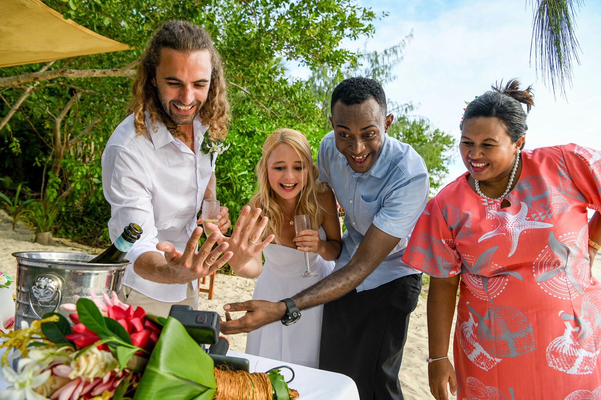 After traveling a lot over the last few years across all continents, they wanted to travel to the South Pacific. When choosing the country to marry in, it was important to them that the marriage could be legally recognized at home in Germany.