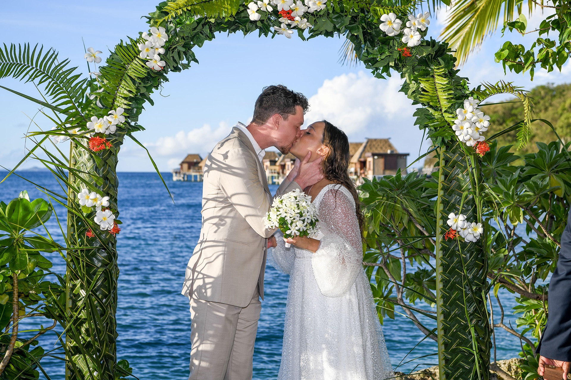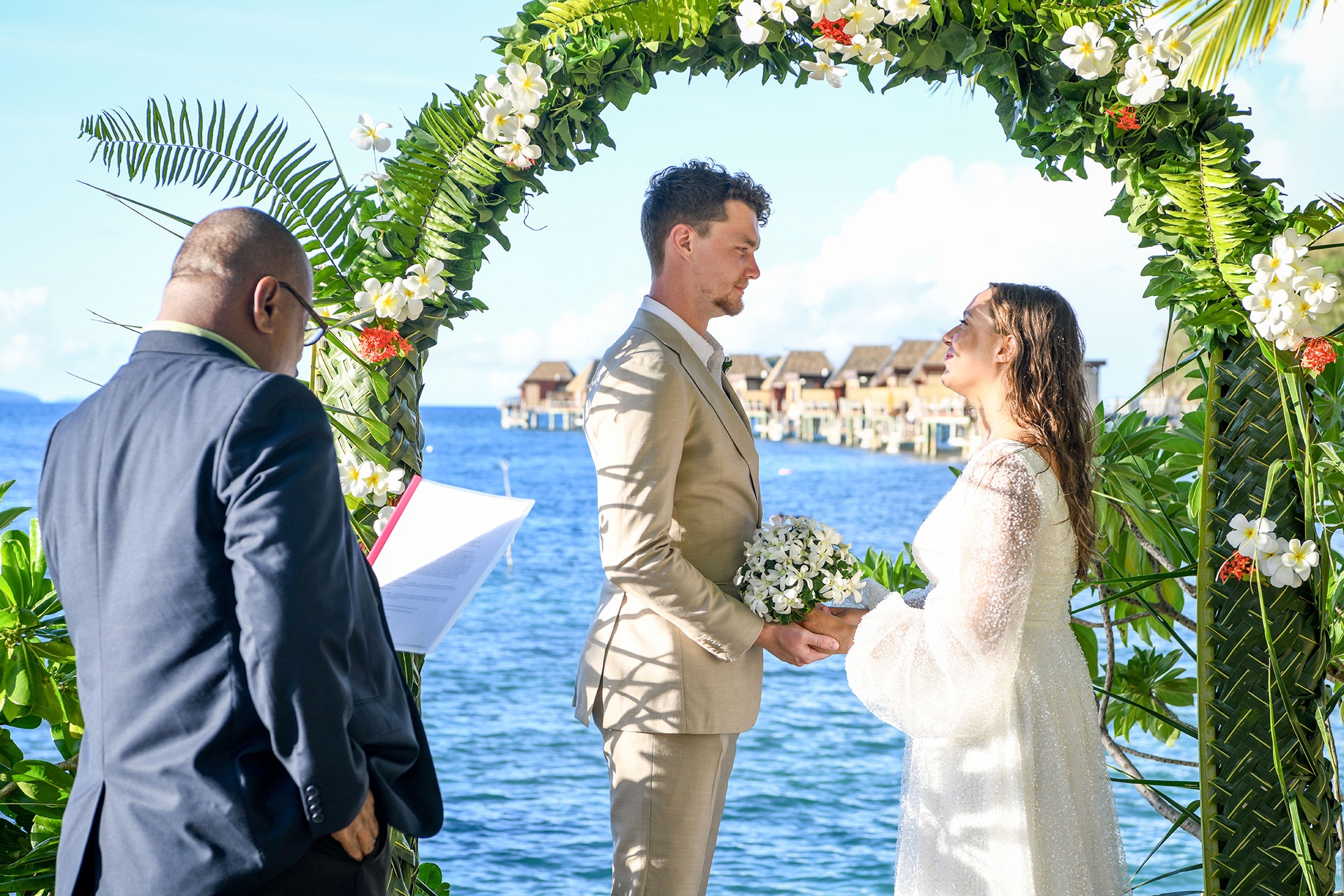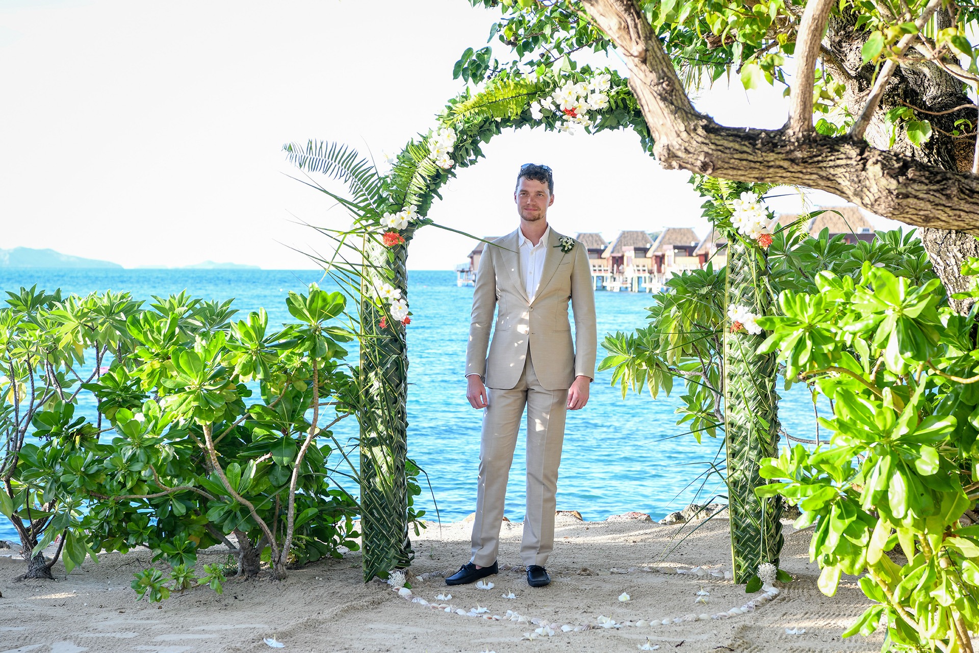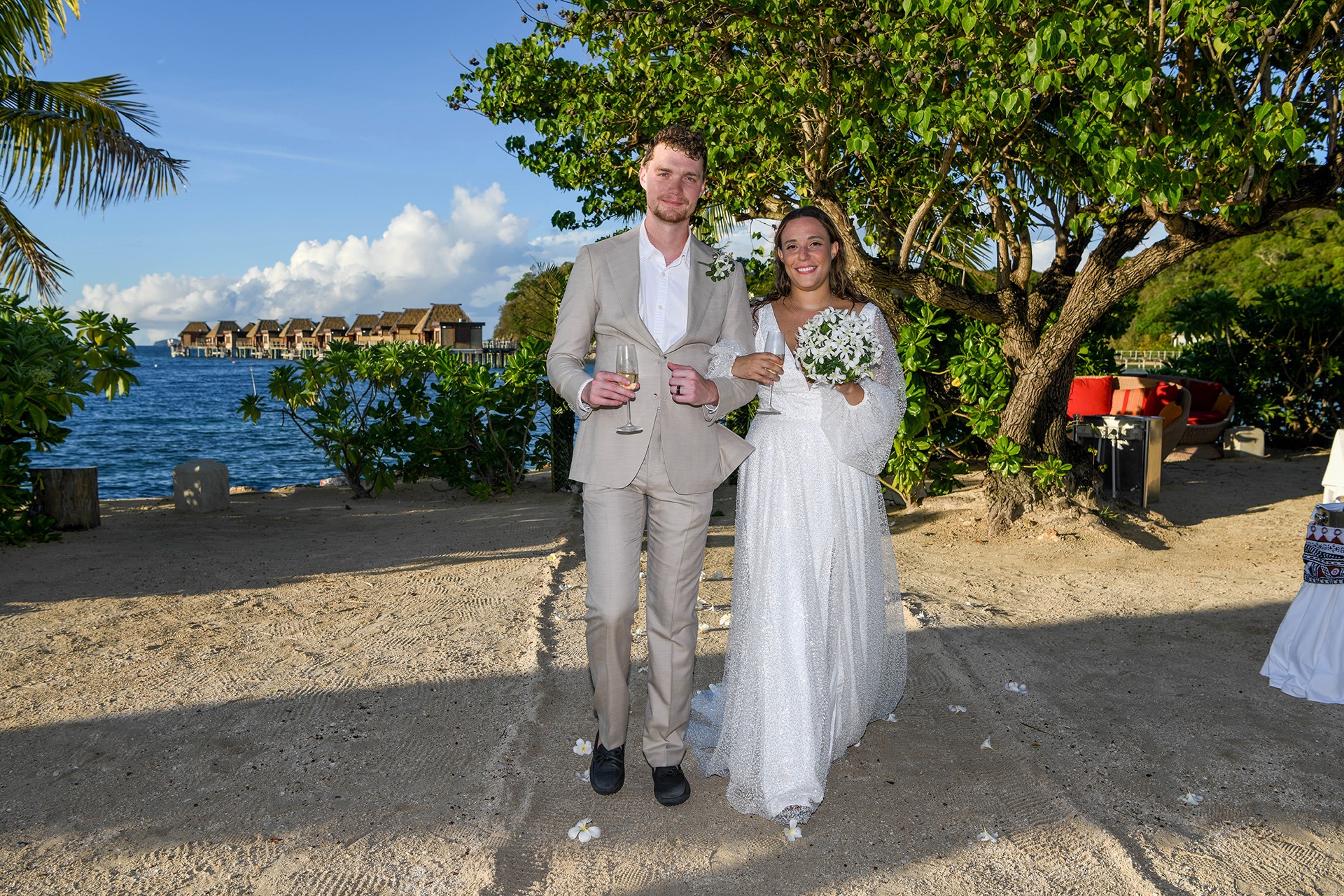 Our ceremony took place beachside at Likuliku Lagoon Resort—a spot that felt like it was made for us. We decided on this location because it perfectly matched our vision of a private, stress-free wedding in paradise. The beachside setting, with its soft sand, gentle waves, and stunning views, offered natural beauty. Likuliku’s calm, romantic vibe and focus on couples sealed the deal—it was the ideal place for just the two of us to say our vows. We wanted somewhere intimate and unforgettable, and that beachside spot gave us exactly that.