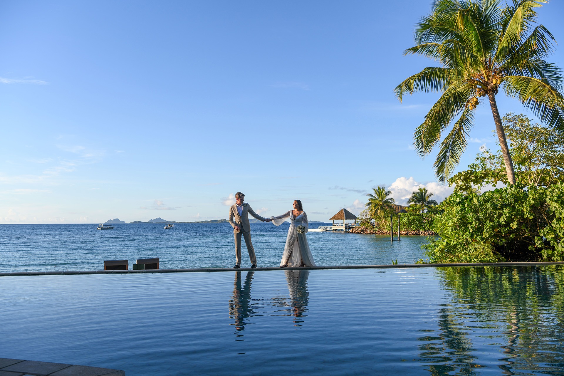 We chose Likuliku Lagoon Resort on Malolo Island in Fiji for our wedding, and it was everything we could’ve hoped for. Likuliku stood out because it’s calm, breathtakingly pretty, and designed with couples in mind. The overwater bures, the tranquil lagoon, and the lush surroundings made it feel like a secluded paradise built just for love. We wanted a spot where we could unwind, soak in the beauty, and focus on each other, and Likuliku delivered that in spades. It was the ideal setting for our private, stress-free celebration.