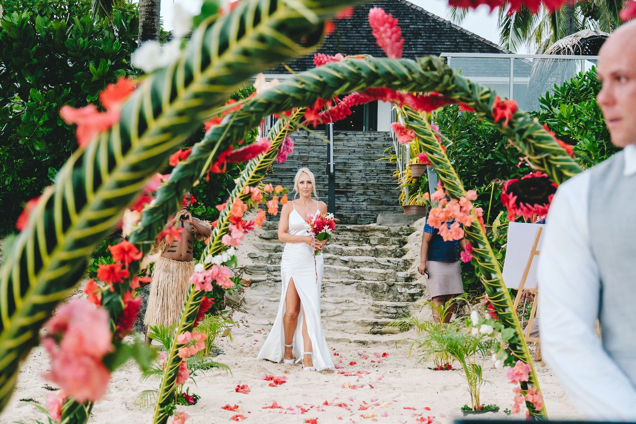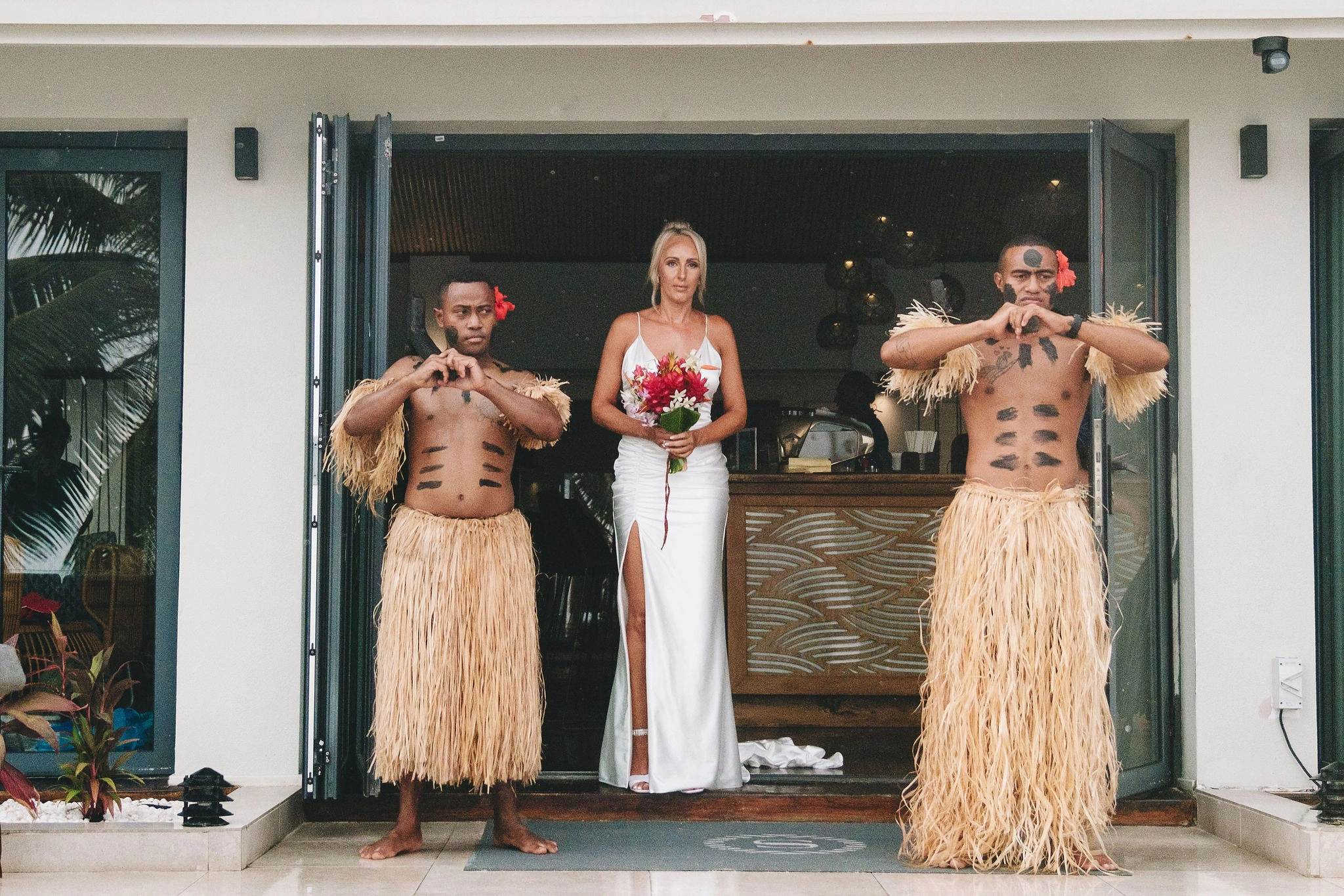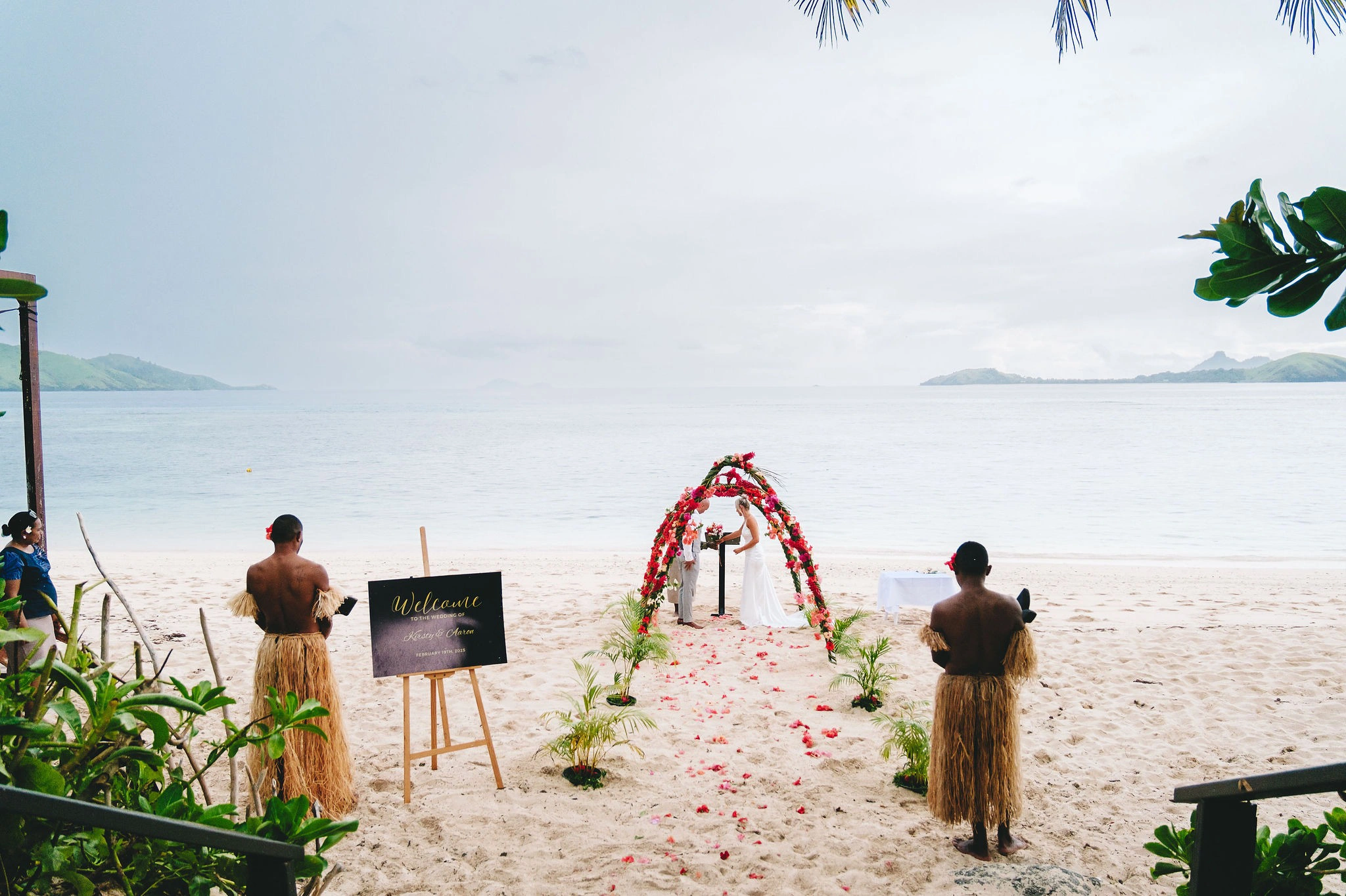 We worked with our wedding planner and celebrant to organize every detail, from the ceremony setup to the décor. I had Fijian warriors walk me down the aisle, adding a beautiful cultural touch to our day.