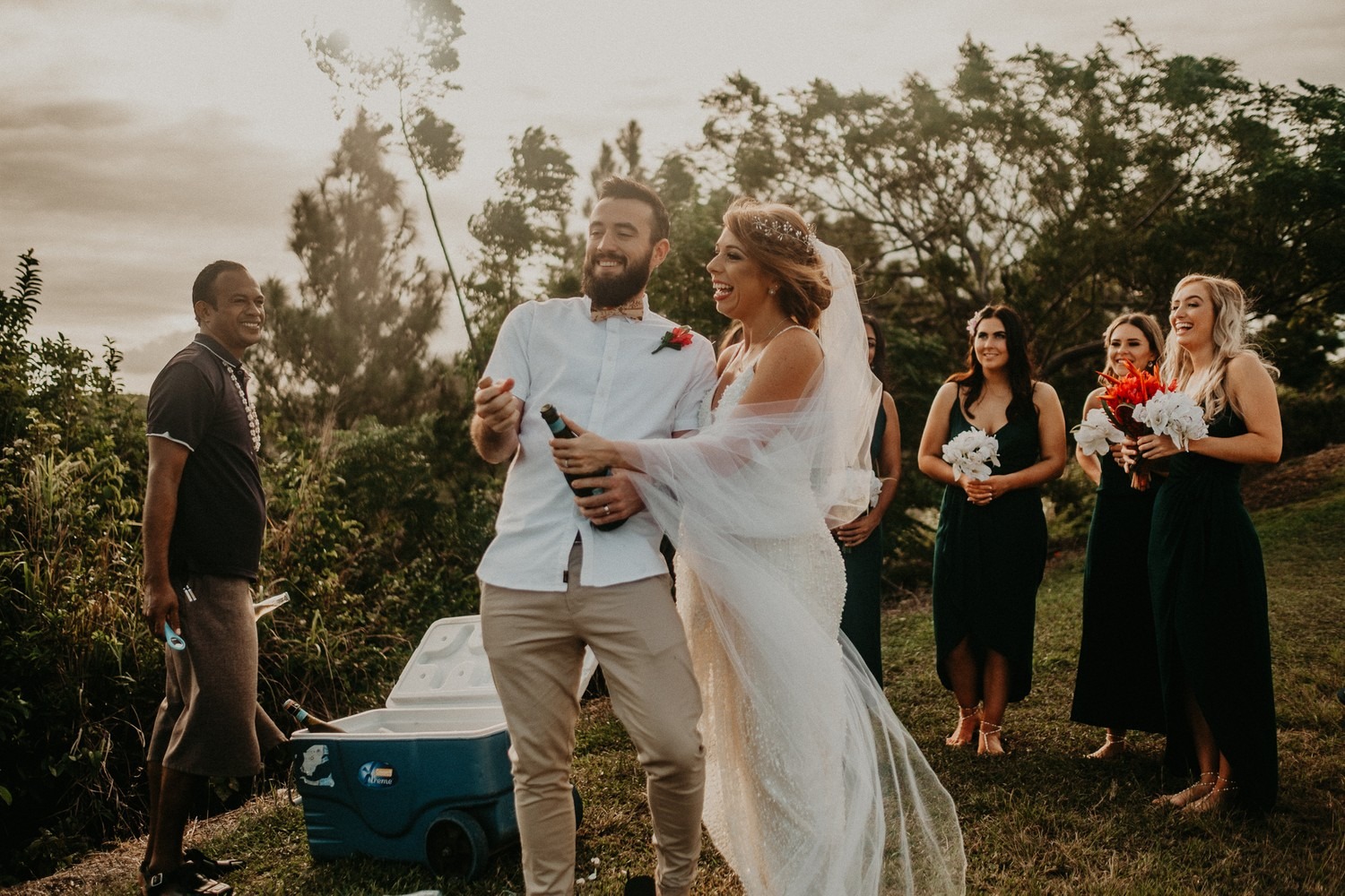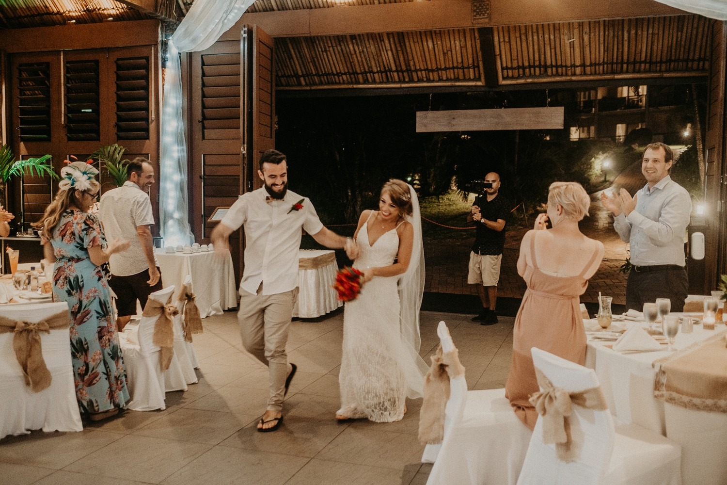 What did you do at the end of the reception? Well… for me the end of the reception is quite a blur (one too many of those Coral Collision cocktails!) but we just partied on through until the reception ended at 10pm. Jiosi was our coordinator for the reception, (what a guy!) helped Cam to ensure that this drunken bride got back to the hotel room okay. A few of our guests continued on the party in the lounge bar at the Outrigger, which had live music playing until 1am.