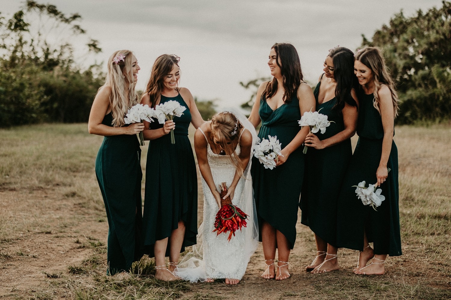 My Mum Sue and mum’s best friend Julie did my hair and also the bridesmaids – so grateful to them both. They were incredibly patient when the humidity kept loosening the girls’ curls and they kept us laughing with old work stories.