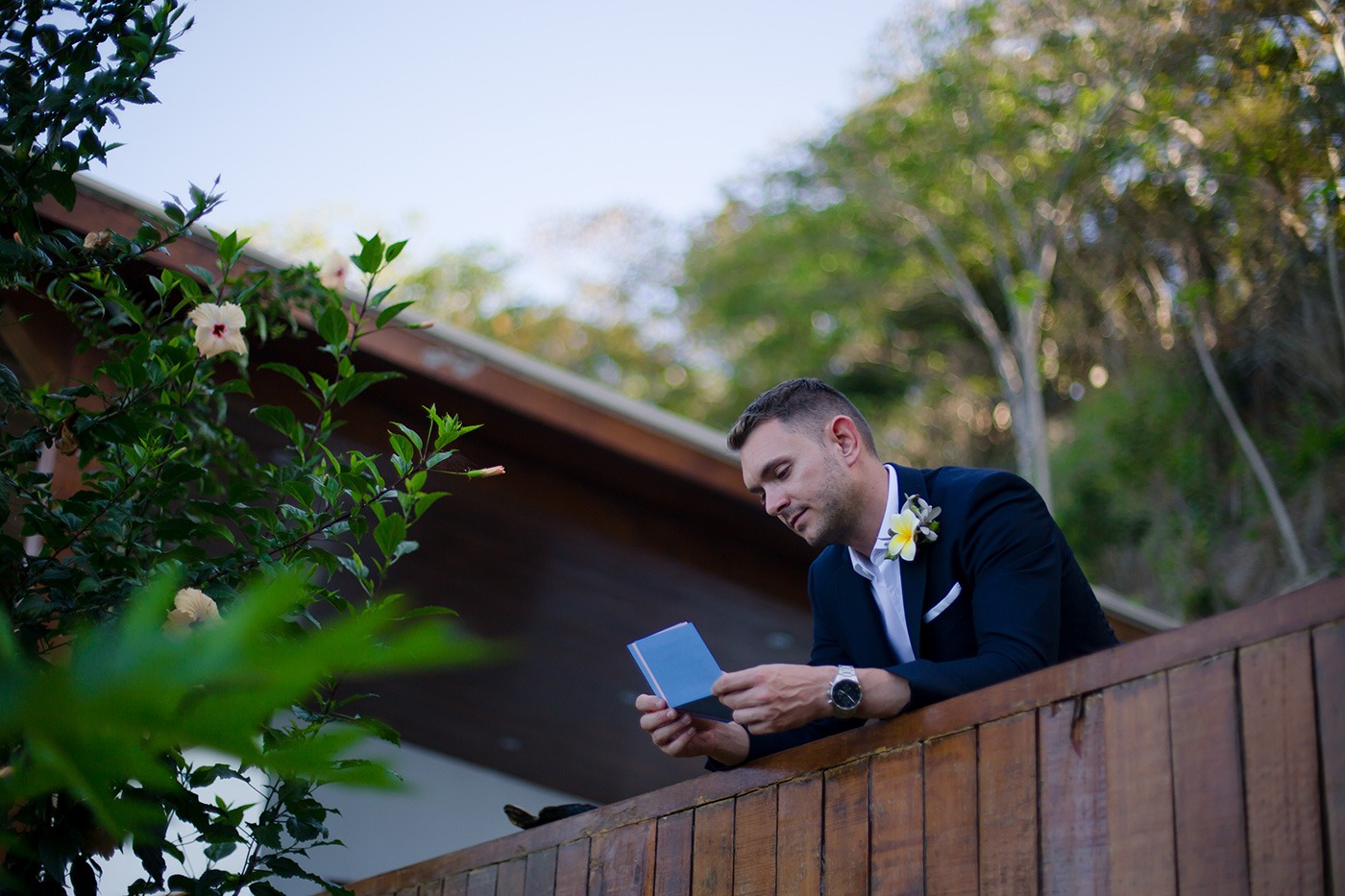 On the morning of the wedding, we were so relaxed, we spent the morning reading and lounging around by our pool! We had a leisurely breakfast and enjoyed the sun. The one thing we did do was paint the names of our friends and family on rocks to place near our ceremony spot. We spent quite a while gathering the stones and then Wes painted all the names. We wanted to have them ‘with us’ and know that we were thinking of them on the day.