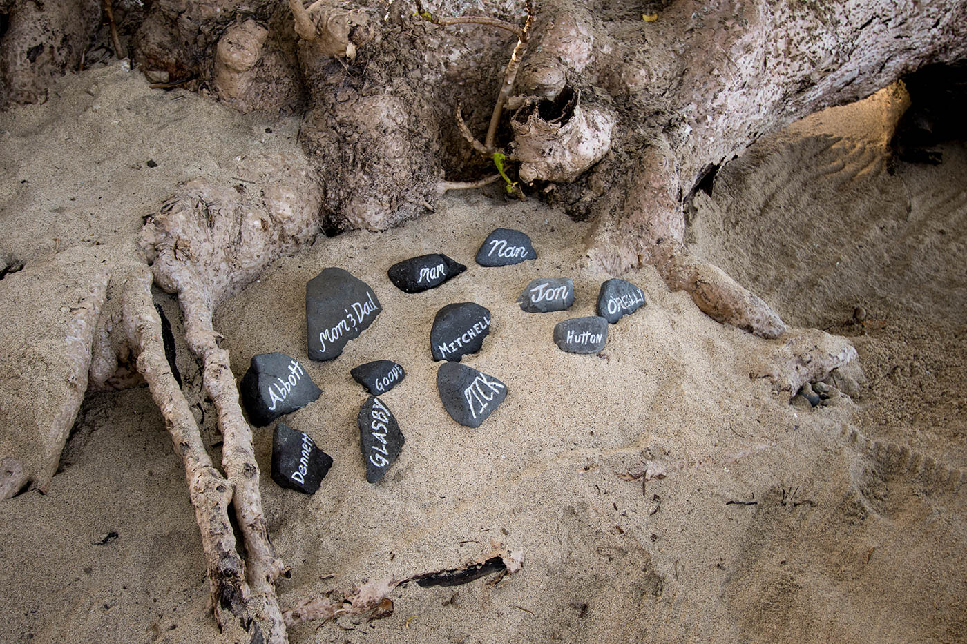 As mentioned already, we placed rocks on the beach to represent our friends and family. It was very special to have them with us symbolically as they couldn’t be there in person. Wes also carried our parents wedding rings in his pocket so they were close to us.