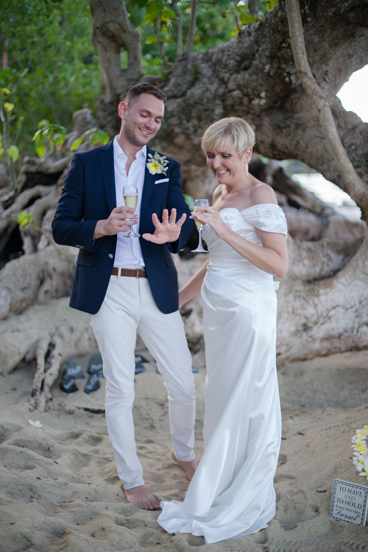We took our own music and a speaker for the ceremony. We chose a few of our favourite songs and the staff played them for us. The highlight was when we played “Simply the Best” by Tina Turner as we opened the champagne and all the staff joined in singing it to us!