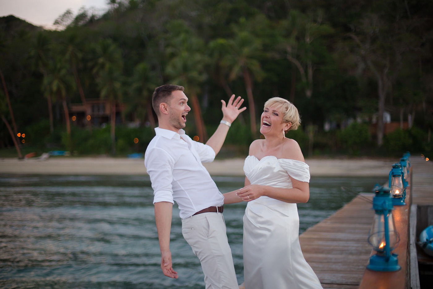 For dinner, we had a table for two set up at the end of the jetty overlooking the ocean. When the view is as good as that, you don’t really need any embellishments. The resort lit lanterns and made the spot quite magical. After dinner on the jetty, we went back to our villa and danced together on the deck.