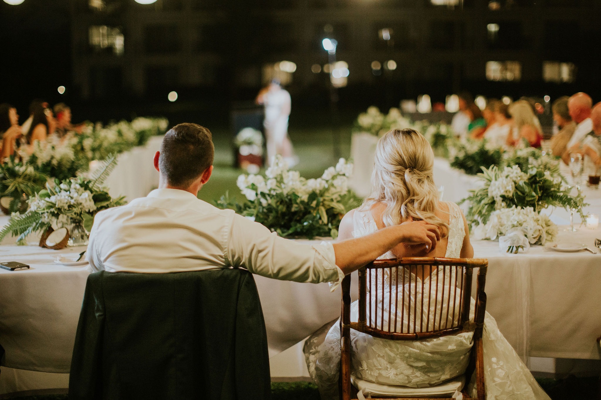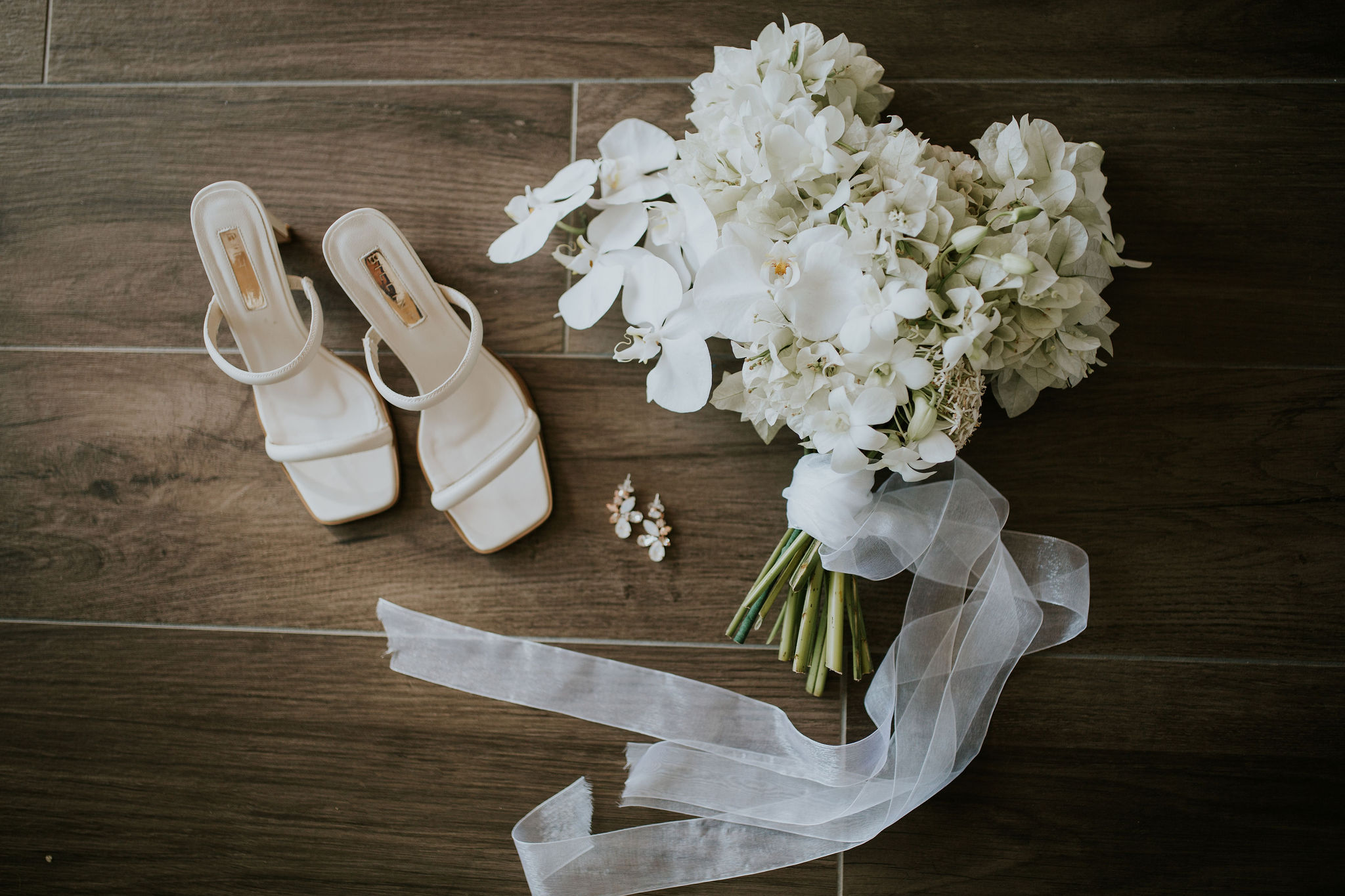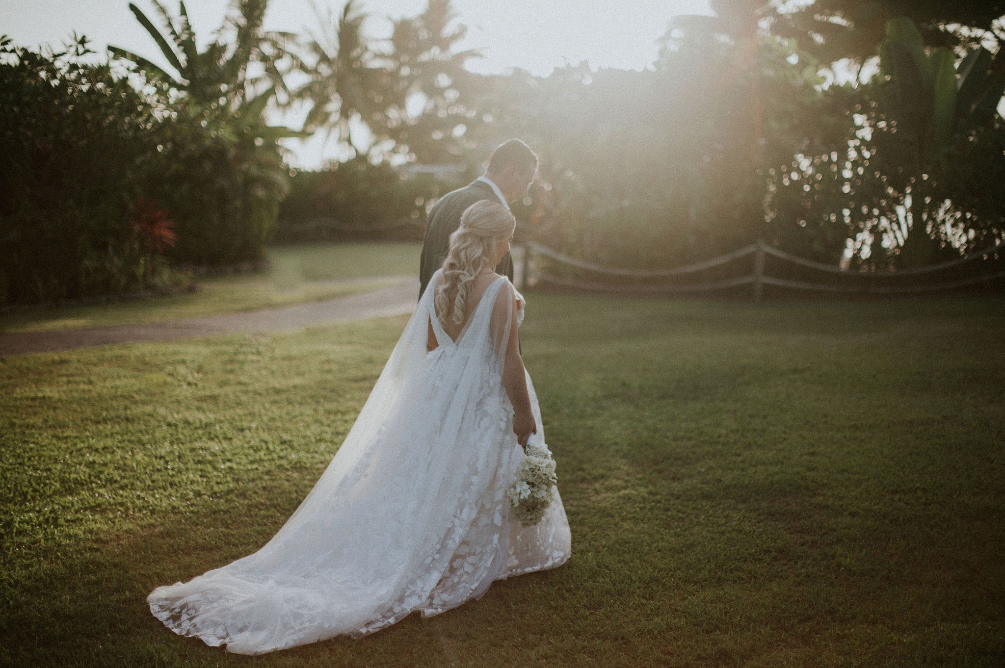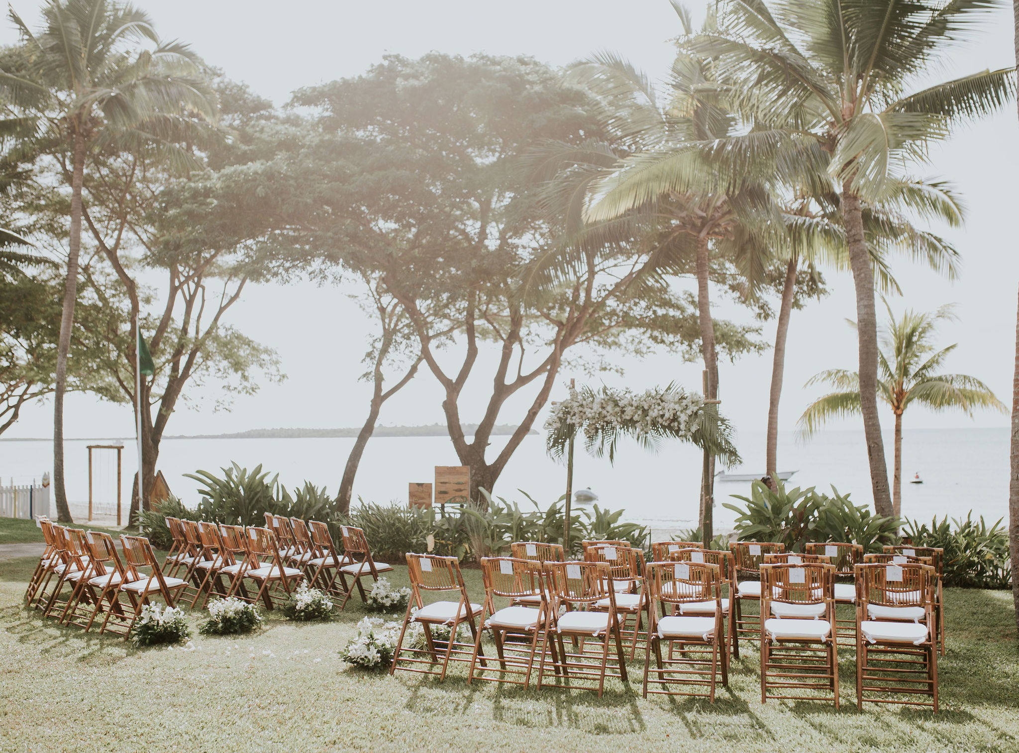 Aka and I developed a unique style over a period of two years (thanks to the pandemic) – the focus was on clean whites, green foliage, and dark timber bamboo. Our theme also had a strong focus on white bougainvillea (as a Fijian substitute for hydrangeas), white orchids and coconuts.