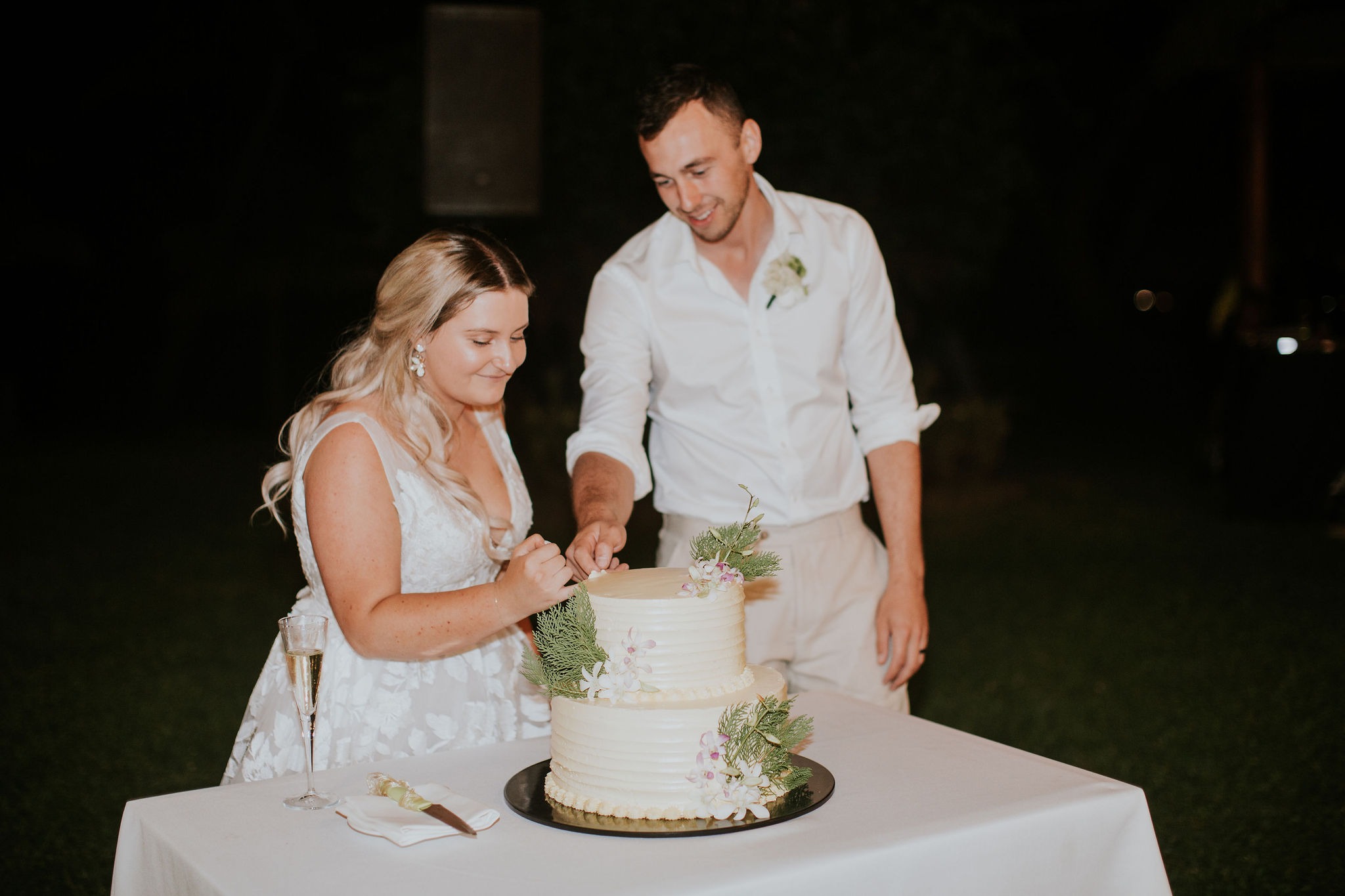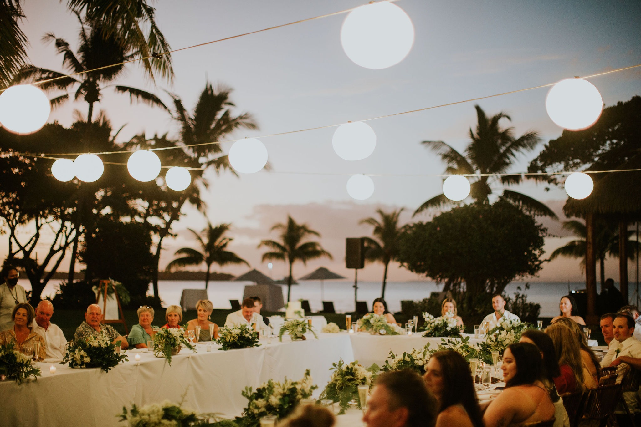 We had drinks and canapes for an hour at sunset for our guests while we had photos. The dinner menu was the Fijian BBQ menu from the Sofitel. Our friends and family are still talking about how beautiful the meals were. Our cake was a two-tier banana cake made by chefs at the Sofitel.