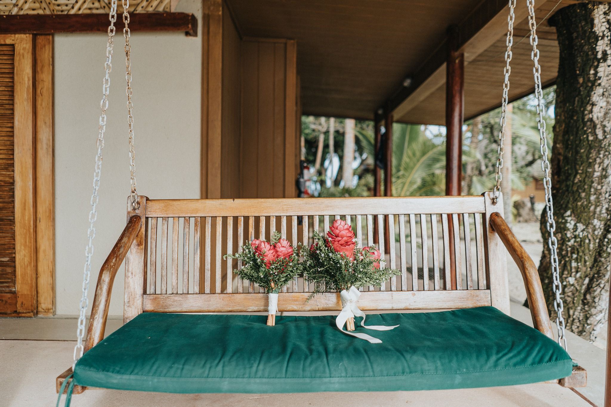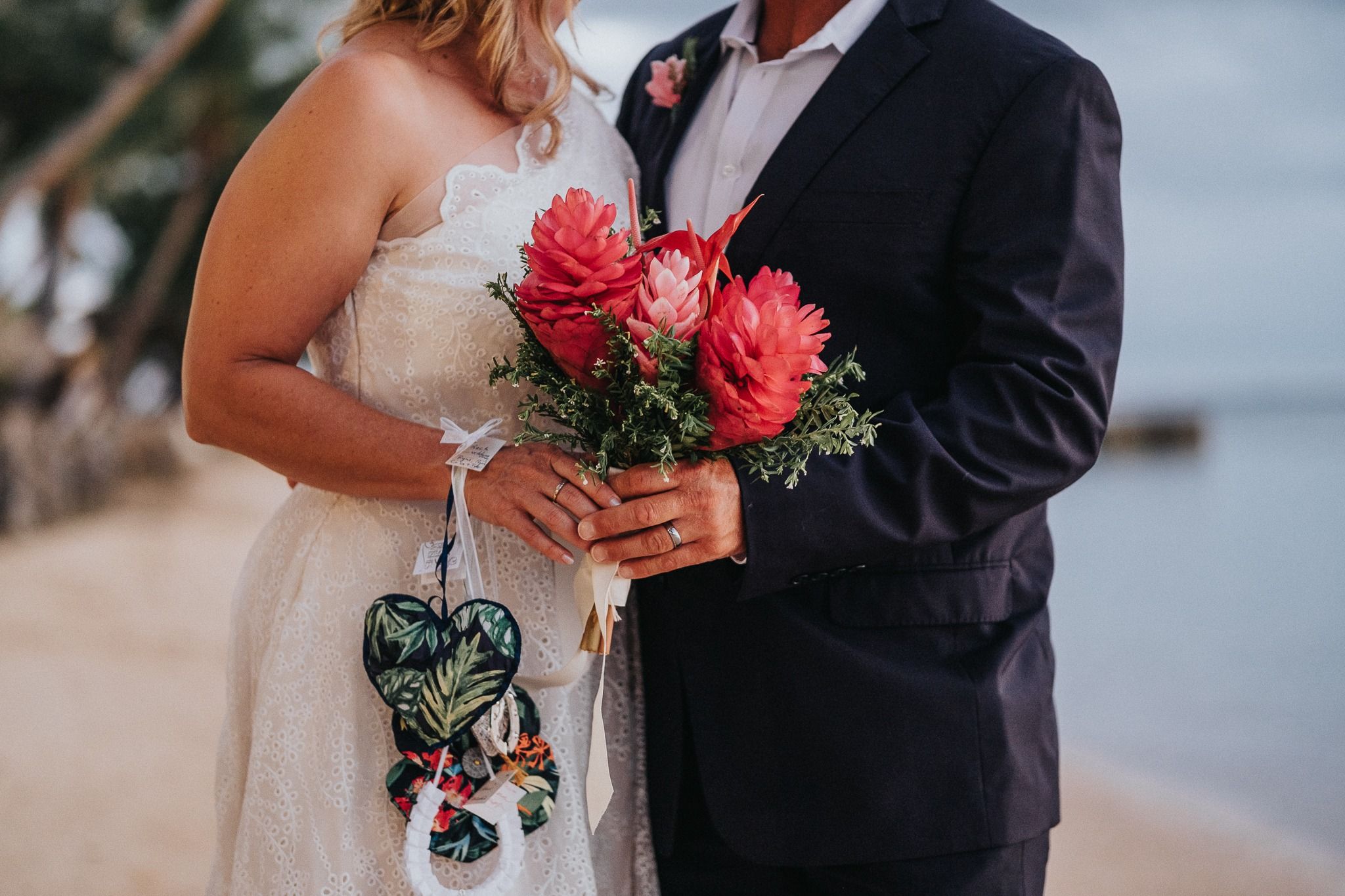 Miri from Toberua Island took care of all the flowers; bouquets, button holes and floral arrangements. We had gorgeous pink ginger flowers and greenery in the bouquets.