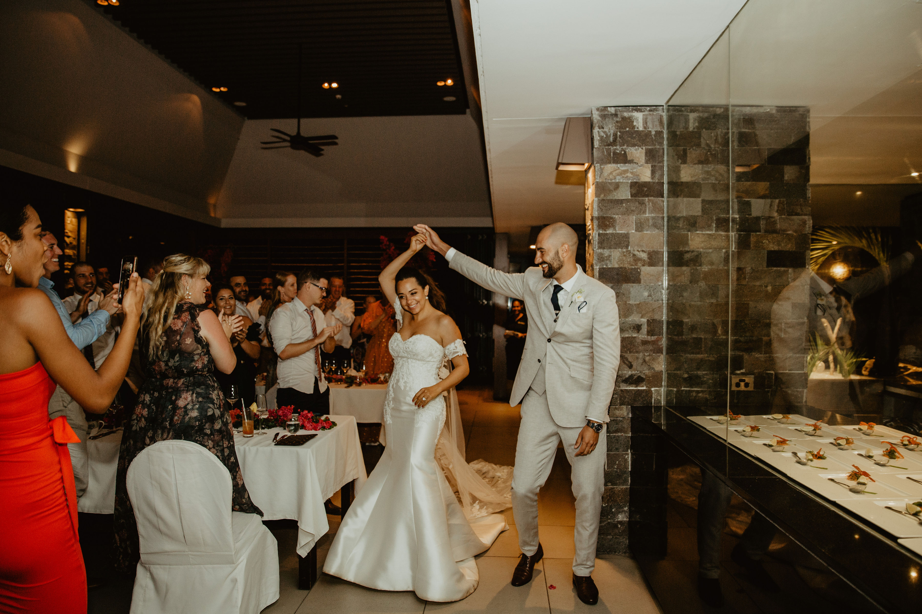 DJ Works Fiji did all our music. It was very important to us to have our own playlists which DJ Works were more than happy to play. We had fire dancers which gave our guests who had never been to Fiji before a taste of the culture. After we had our last song we moved to the Kama Lounge at the resorts main cocktail bar to continue on with the celebrations.