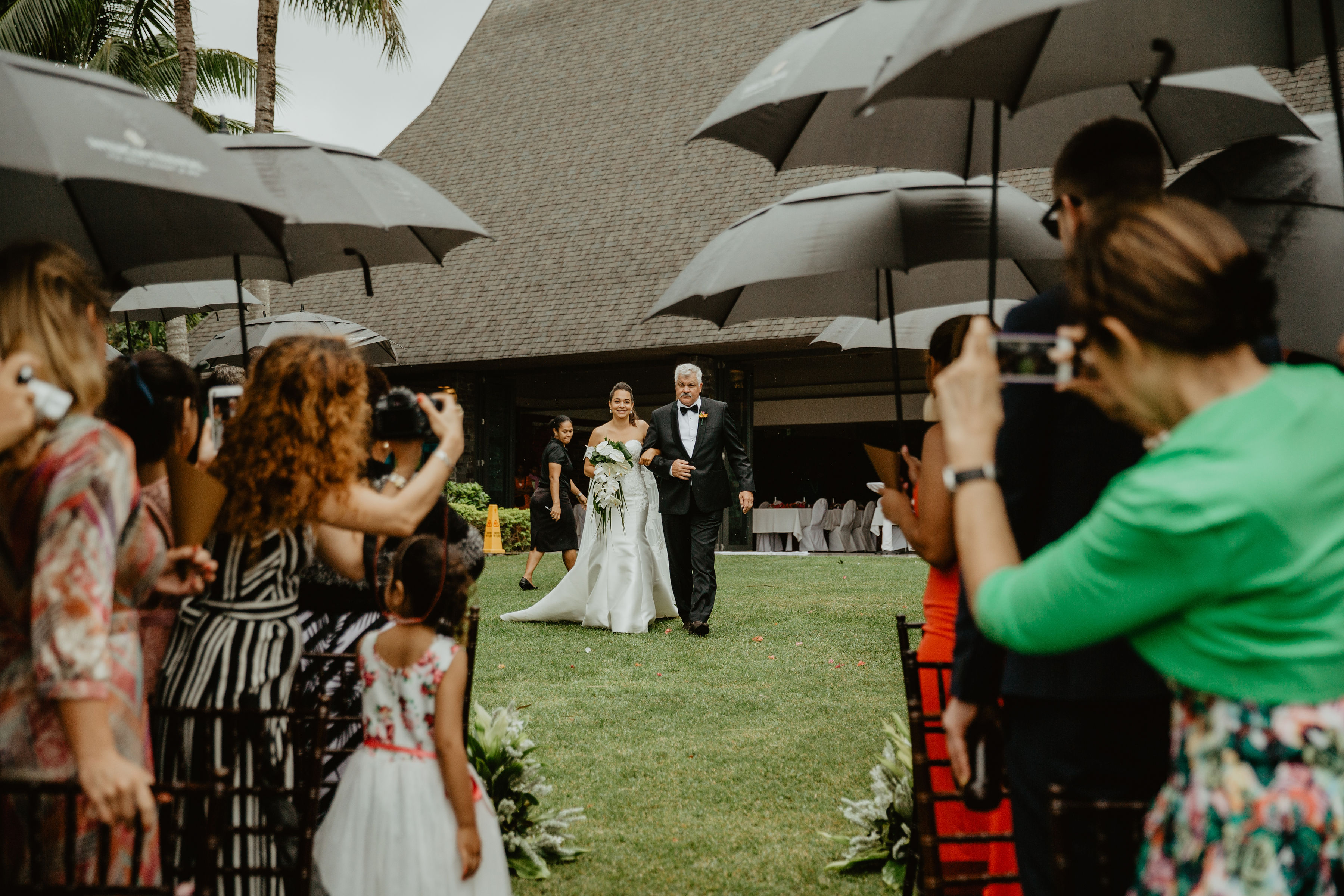 I don’t know if the gods were looking out for us or by just some stroke of absolute luck that 10mins before I walked down the aisle, the rain had completely eased off and the wind had died down and when it came time for me to walk down the aisle, it was only drizzling ever so slightly which to my surprise made our ceremony feel very intimate. There was a certain feel of serenity and stillness in the air that made it all seem so peaceful and calming.