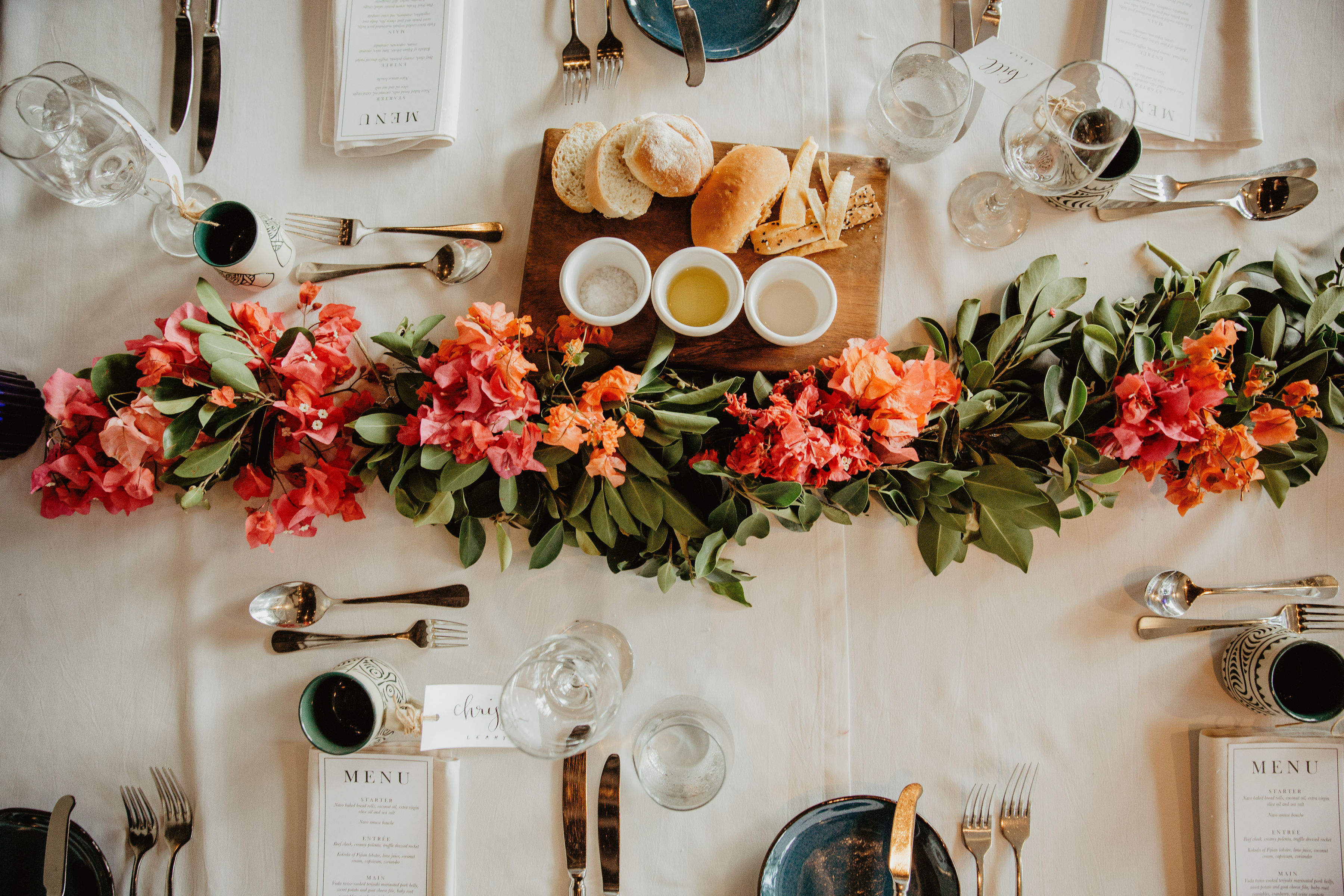 Sue and her team at the resort set up the tables, our guest favours and our guests name tags while the flowers and signs were set up by Grace Creations Fiji.