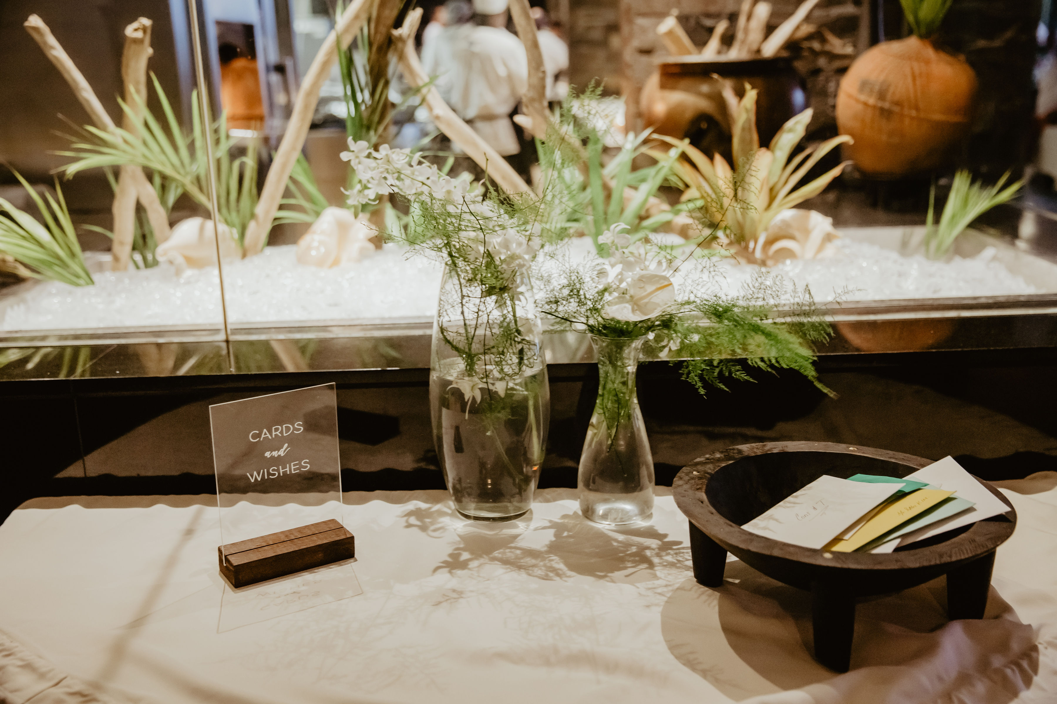 Flowers & bouquets were by Grace Creations Fiji. We opted for a floor flower arrangement with tropical white flowers and greenery. We also had two floor arrangements with the same tropical flowers for the beginning of the aisle.