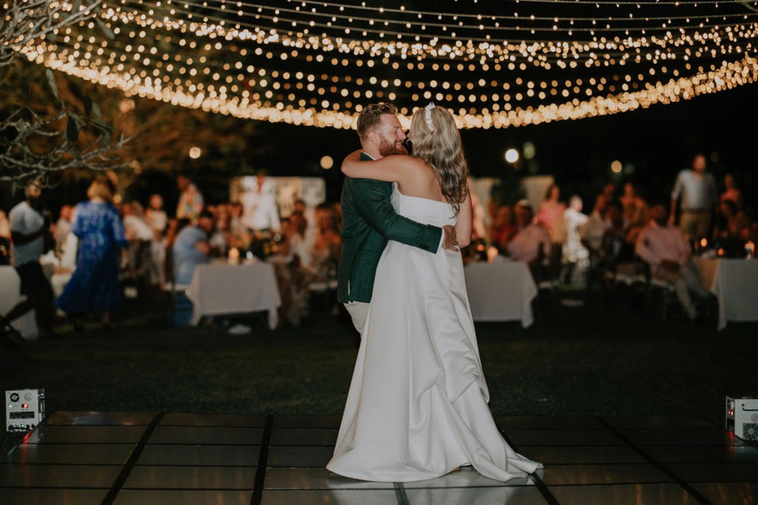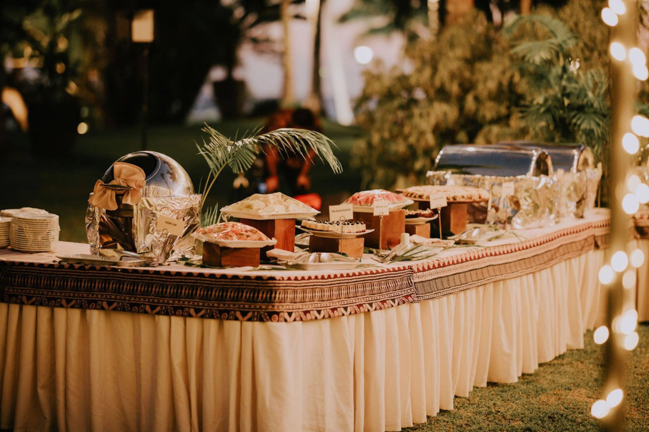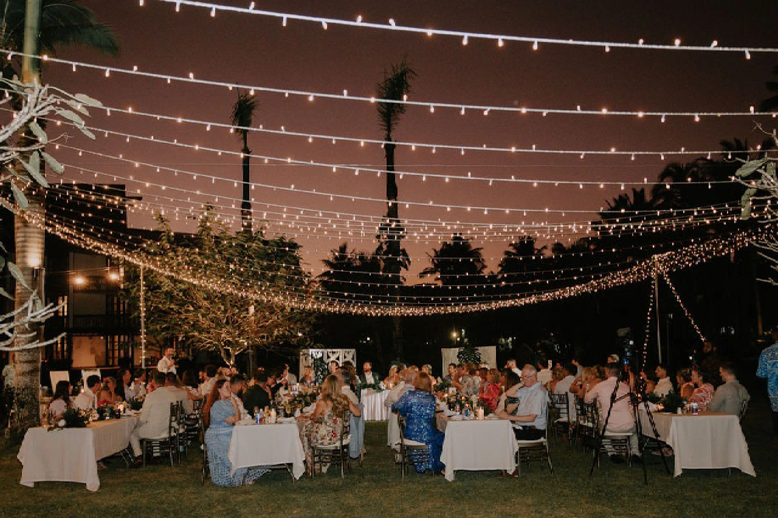 We held our adults-only reception on the Navau Lawn, the perfect outdoor spot to accommodate our group with a canopy of fairy lights and long tables, just as I had always envisioned. The setup was absolutely stunning!