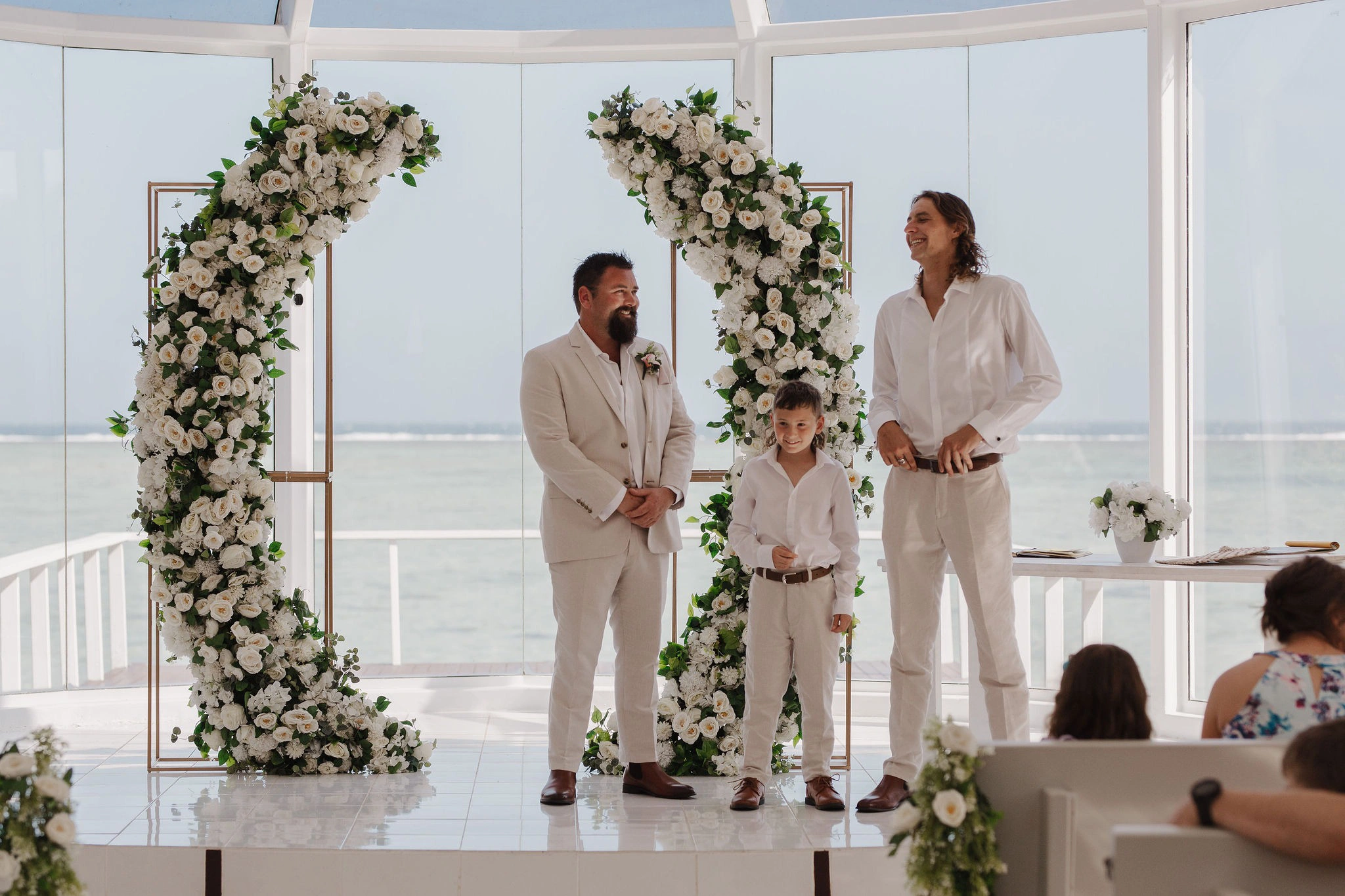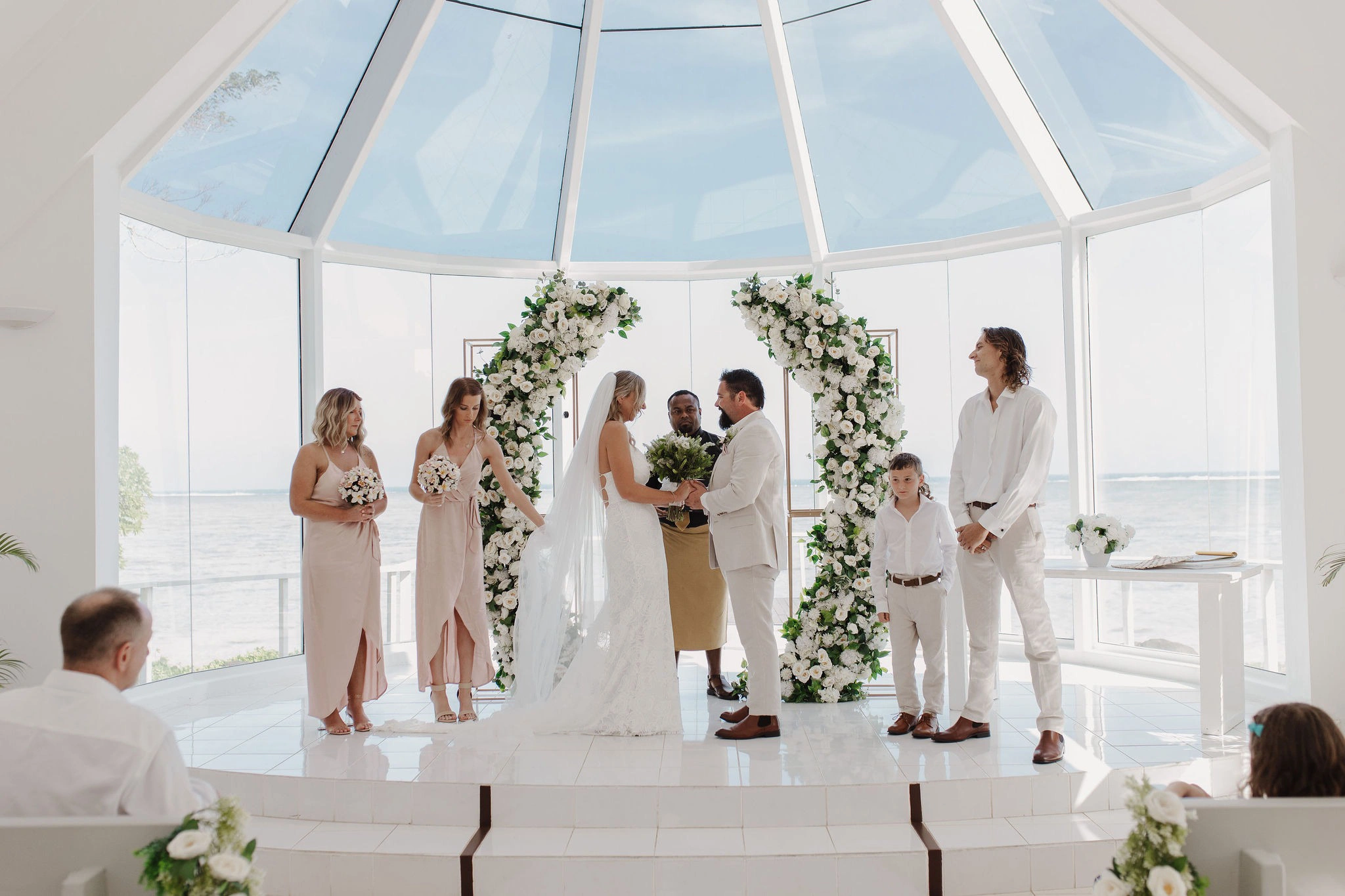 Our ceremony was held in the chapel, which was the perfect location with its breathtaking floor-to-ceiling glass windows overlooking the ocean. It was a stunning setting, offering a refreshing escape from the heat and breeze with the comfort of air conditioning.
