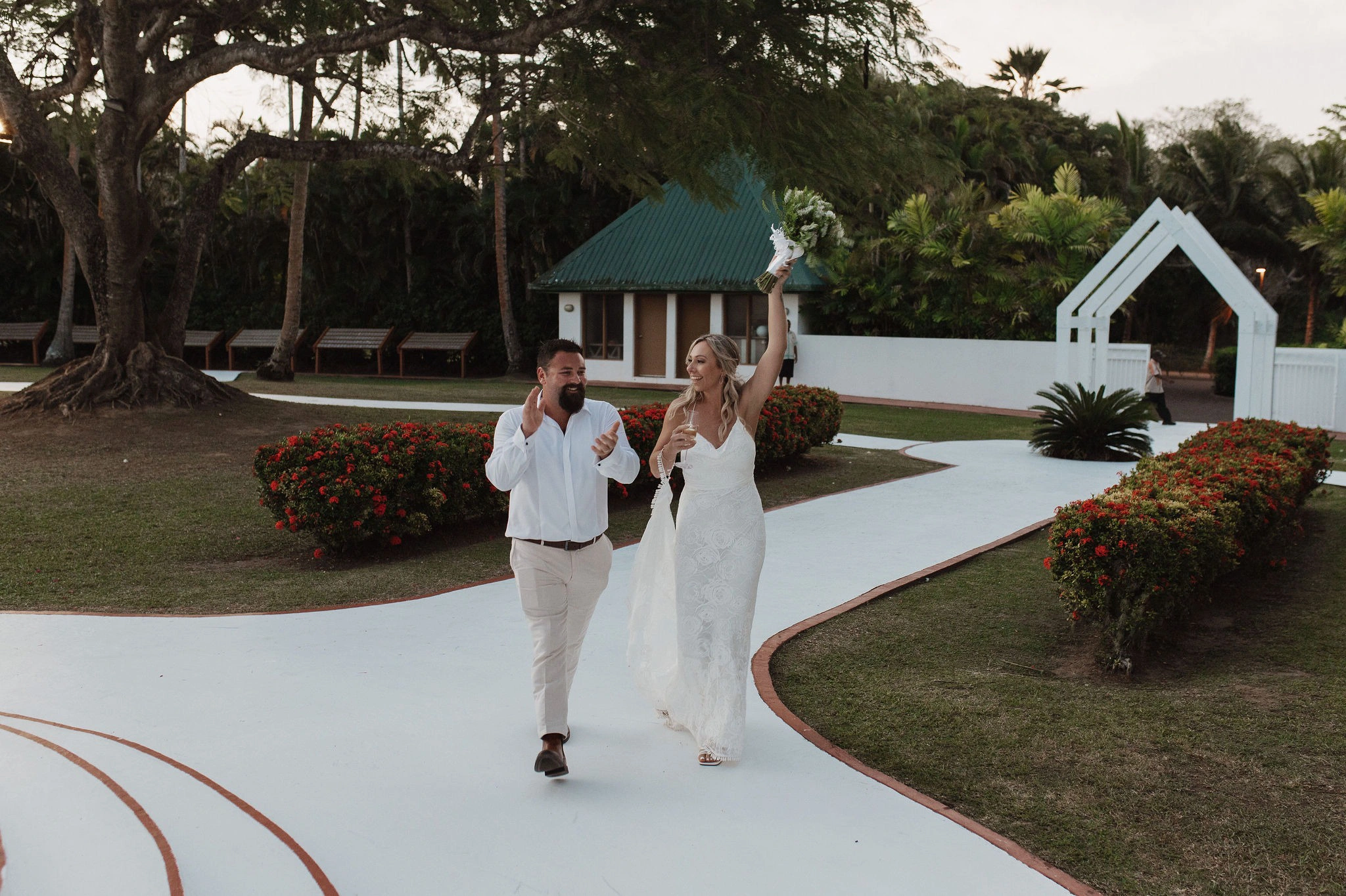 The resort provided the florist for our flowers. I shared the color tones I wanted, and they delivered the bouquets to our room an hour before the ceremony—they were absolutely beautiful, and we were thrilled with them. We wrote our own vows, which made the ceremony deeply personal and special. It was relaxed, simple, and truly meaningful. Our celebrant, Usaih, was fantastic—he had such a warm presence and spoke so beautifully, making the day even more memorable.