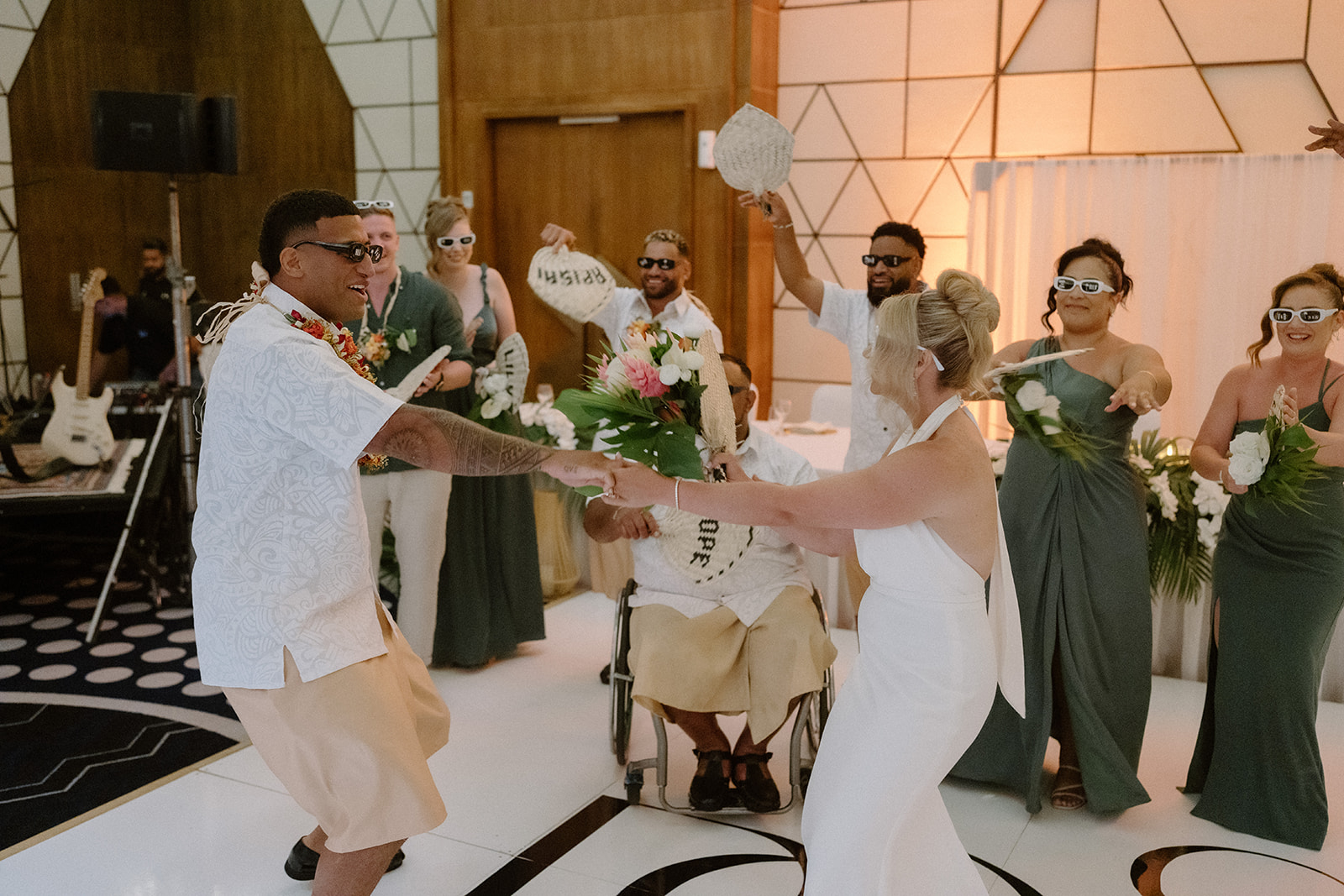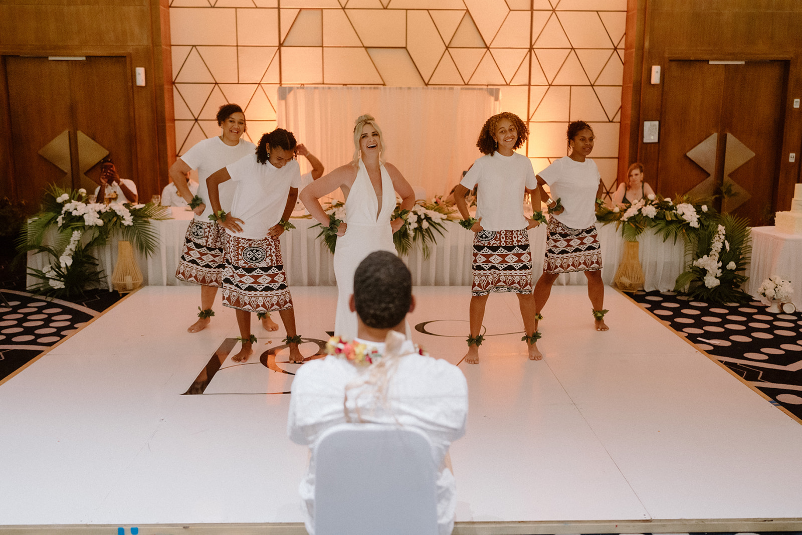 Crowne Plaza and The Wedding Shop Fiji were incredibly accommodating when it came to the weather. We didn’t expect it to rain, but the forecast showed heavy rain in the days leading up to our wedding. They organised a meeting the day before to walk us through all the possible scenarios, which gave us so much peace of mind. While I was initially disappointed about moving the reception indoors, it truly turned out better than we could have imagined.