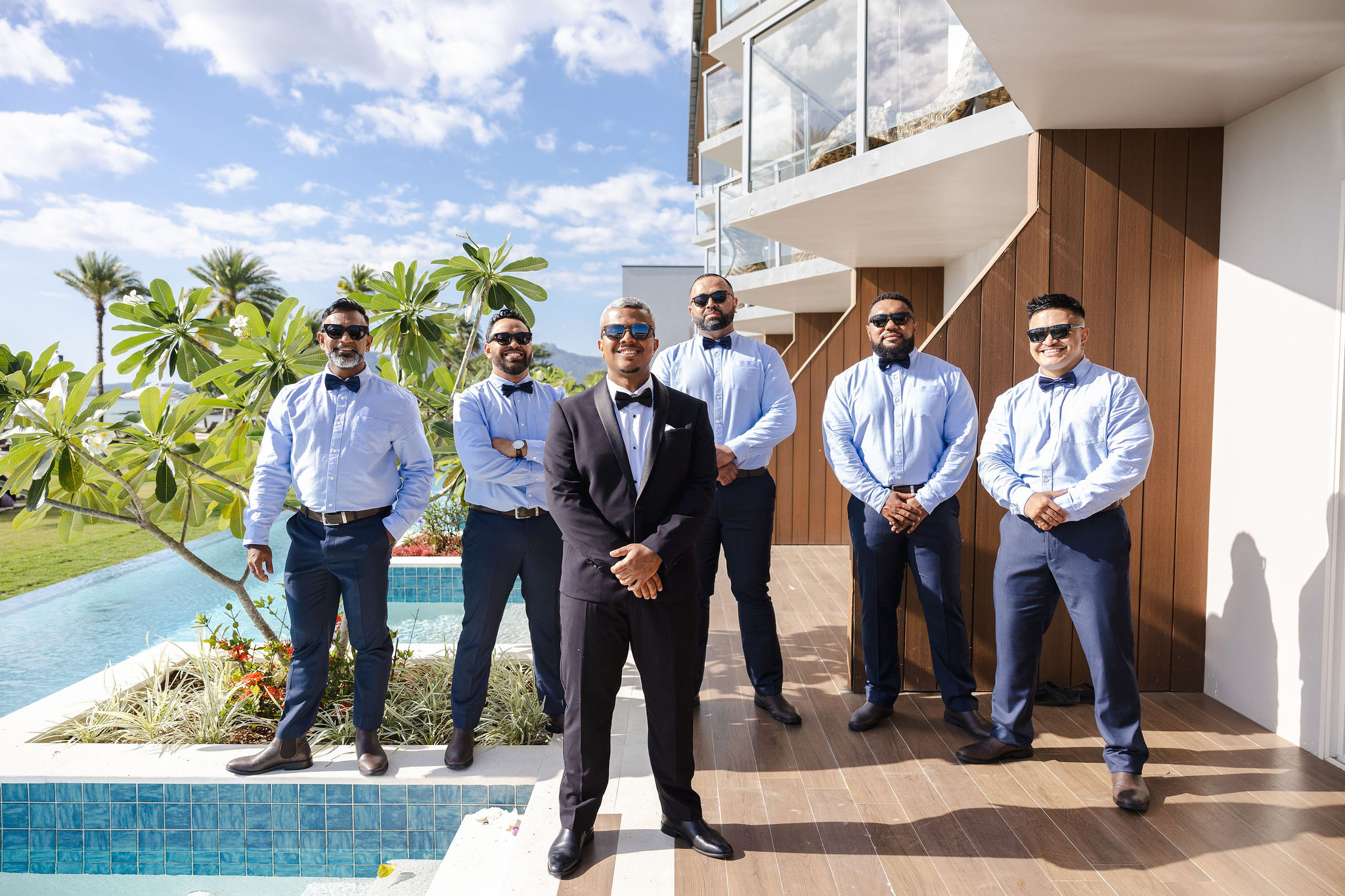 The groom’s tuxedo and shoes were from Tarocash, and the groomsmen outfits were all from Connor.