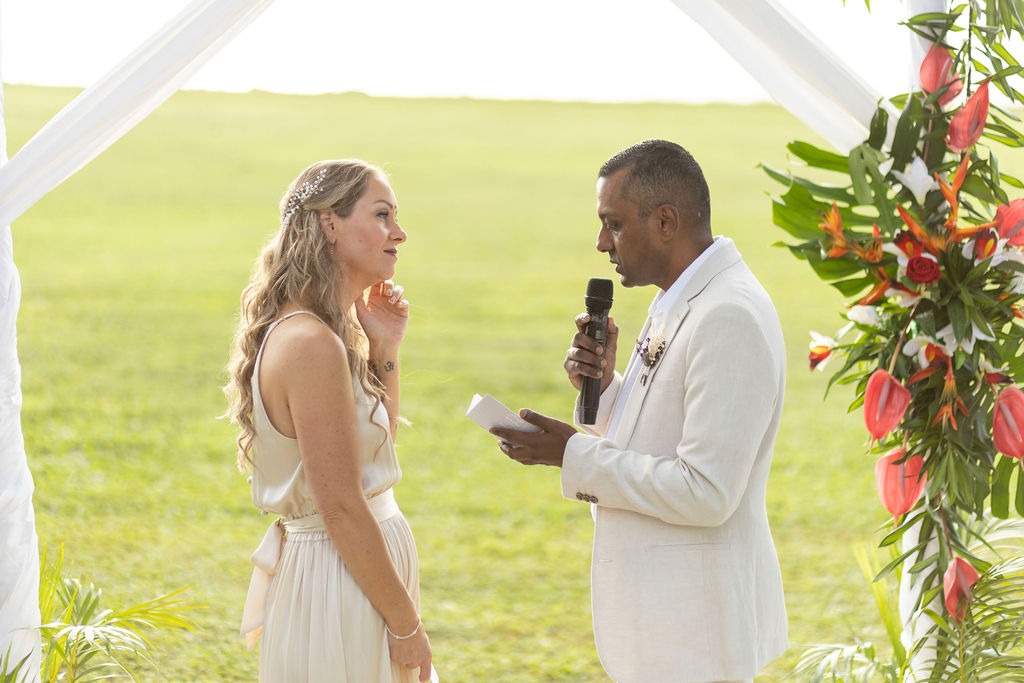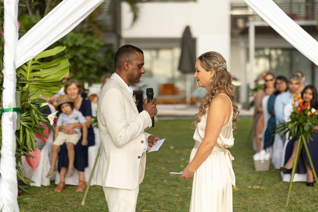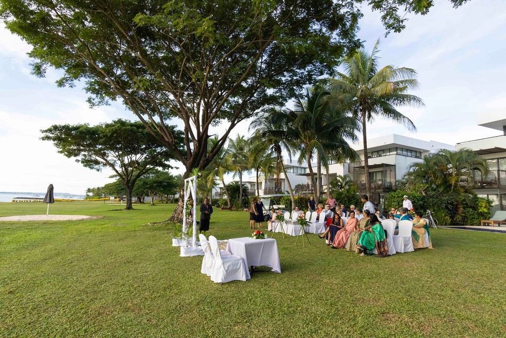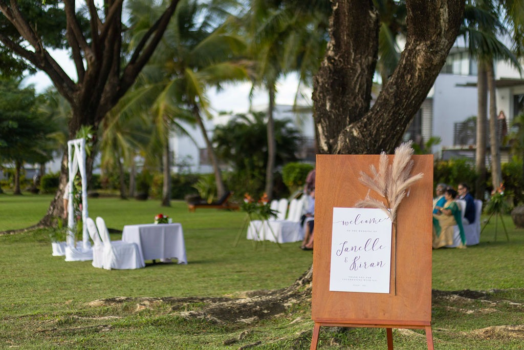 The ceremony was just outside from our room on the grass at the Hilton Resort. We choose it as it was private and also the location we were originally going to use was not going to work due to a clash with another event happening at the resort.