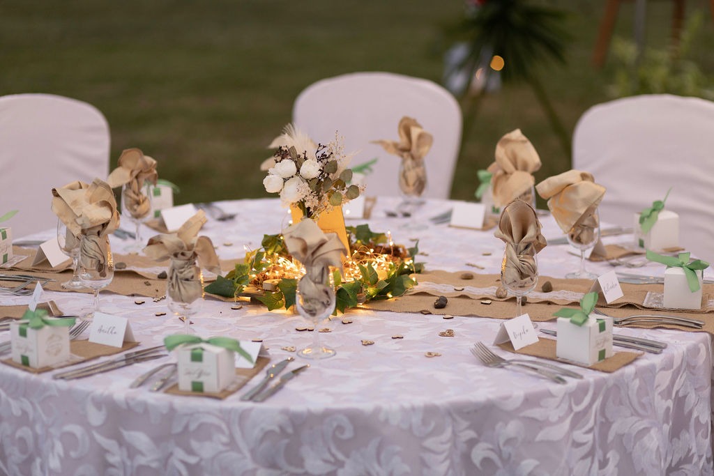 We provided all the table decorations etc and were lucky enough that a couple of our amazing guests were able to set up/oversee the placing of these. This was due to a lack of communication about what our wedding package included and did make it more stressful for us. I would highly recommend having an actual meeting with the hotel or venue where your ceremony and wedding are taking place to confirm what is and isn’t included. By the time we realized, we weren’t able to find someone to do theming for our reception.
