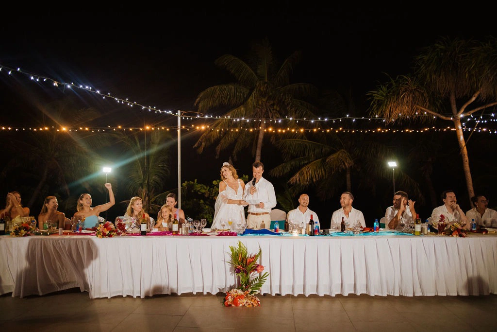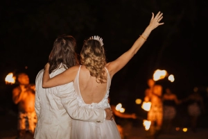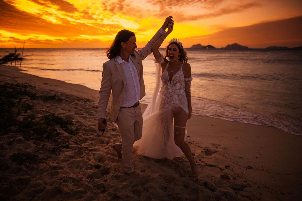 We’re absolutely over the moon with our photos – our favorites are the sunset beach shots as newlyweds under the full moon, plus moments with our bridal party and guests. The fire dancer photos were also a spectacular highlight—worth every penny for any bride considering it!