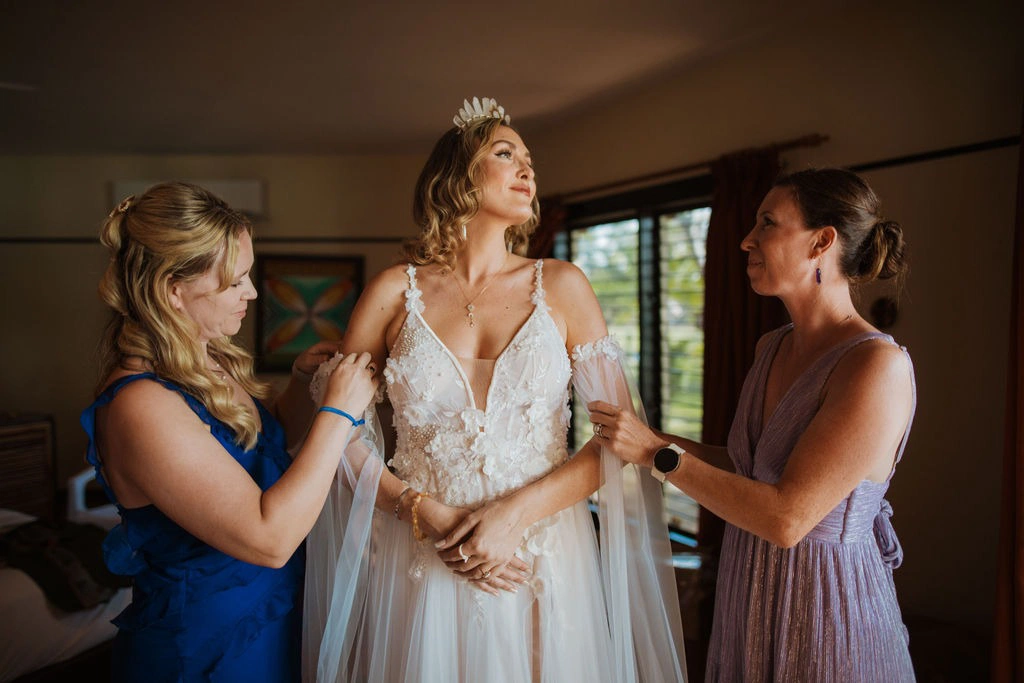 We went with Totoka Hair and Make Up for hair and make up services. I didn’t even need to research them—they came highly recommended by so many Real Weddings brides, and their glowing reviews were spot on. They were professional, organized, and fantastic with communication. On both my trial and wedding day, the stylists were incredibly talented, friendly, and attentive, making the experience feel like having another set of sisters in the room. I can’t recommend them enough to any Fiji bride!