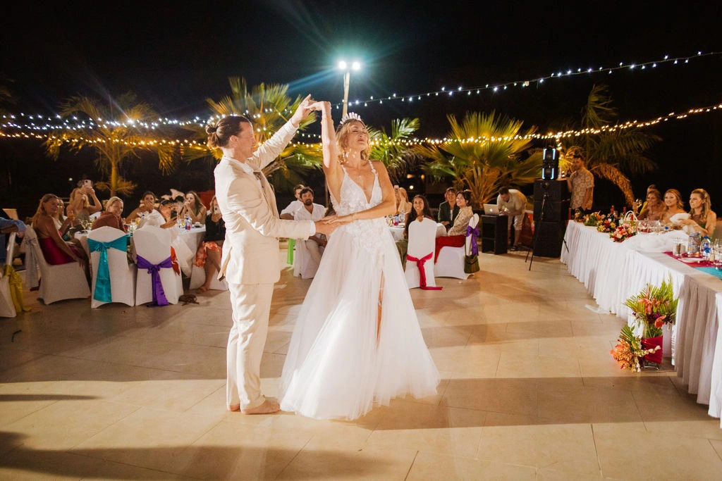 Our brother Jesse took on DJ duties, spinning an epic mix of dance anthems from both of our cultures that kept the dance floor packed all night. To end the night, we moved to the beach for a full moon dance party under the stars, celebrating until sunrise over the ocean.