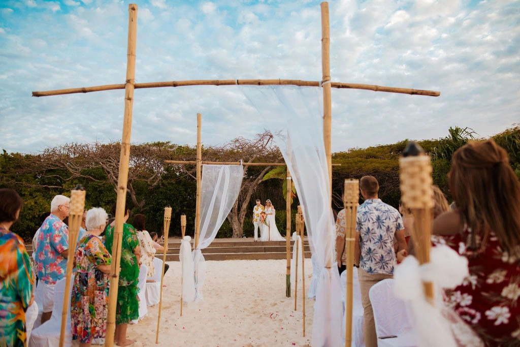 Our ceremony was held at Sunset Beach during sunset, with the full moon rising simultaneously—it was pure magic! A beach setting was non-negotiable for us, rain or shine, and it turned out to be everything we had dreamed of.