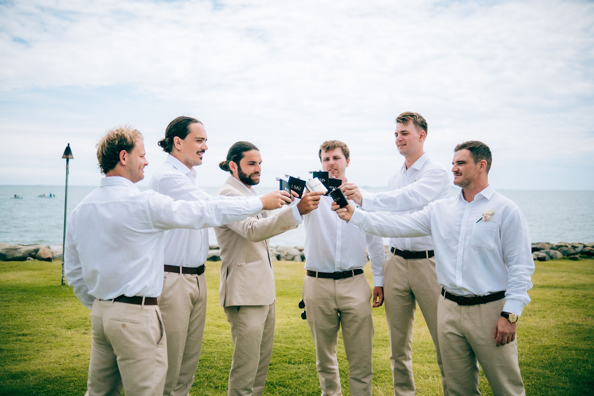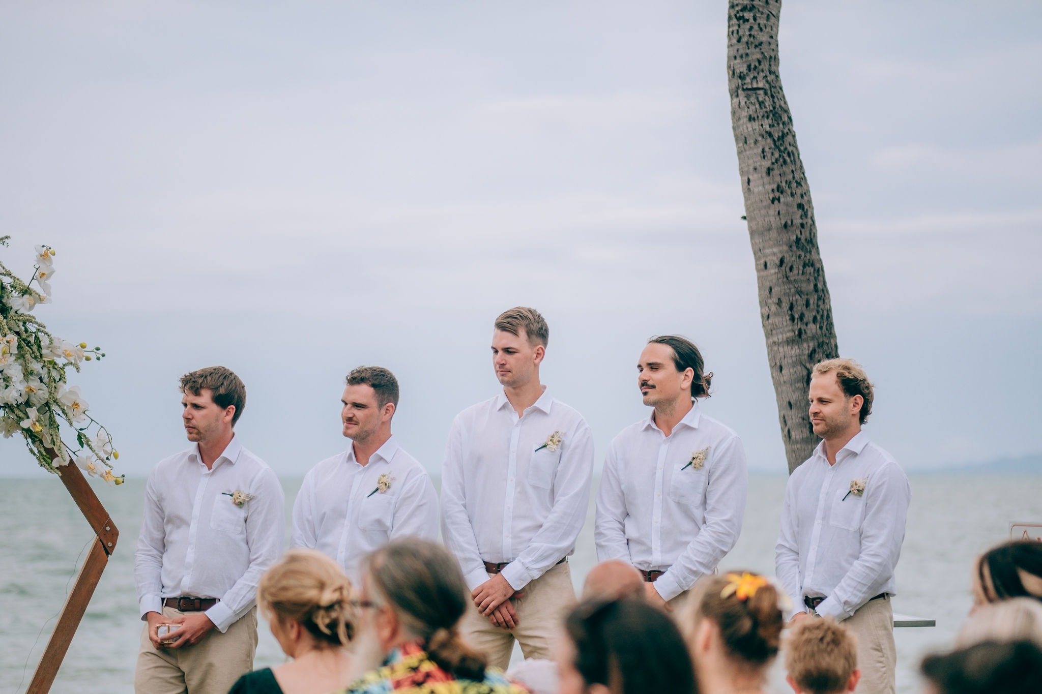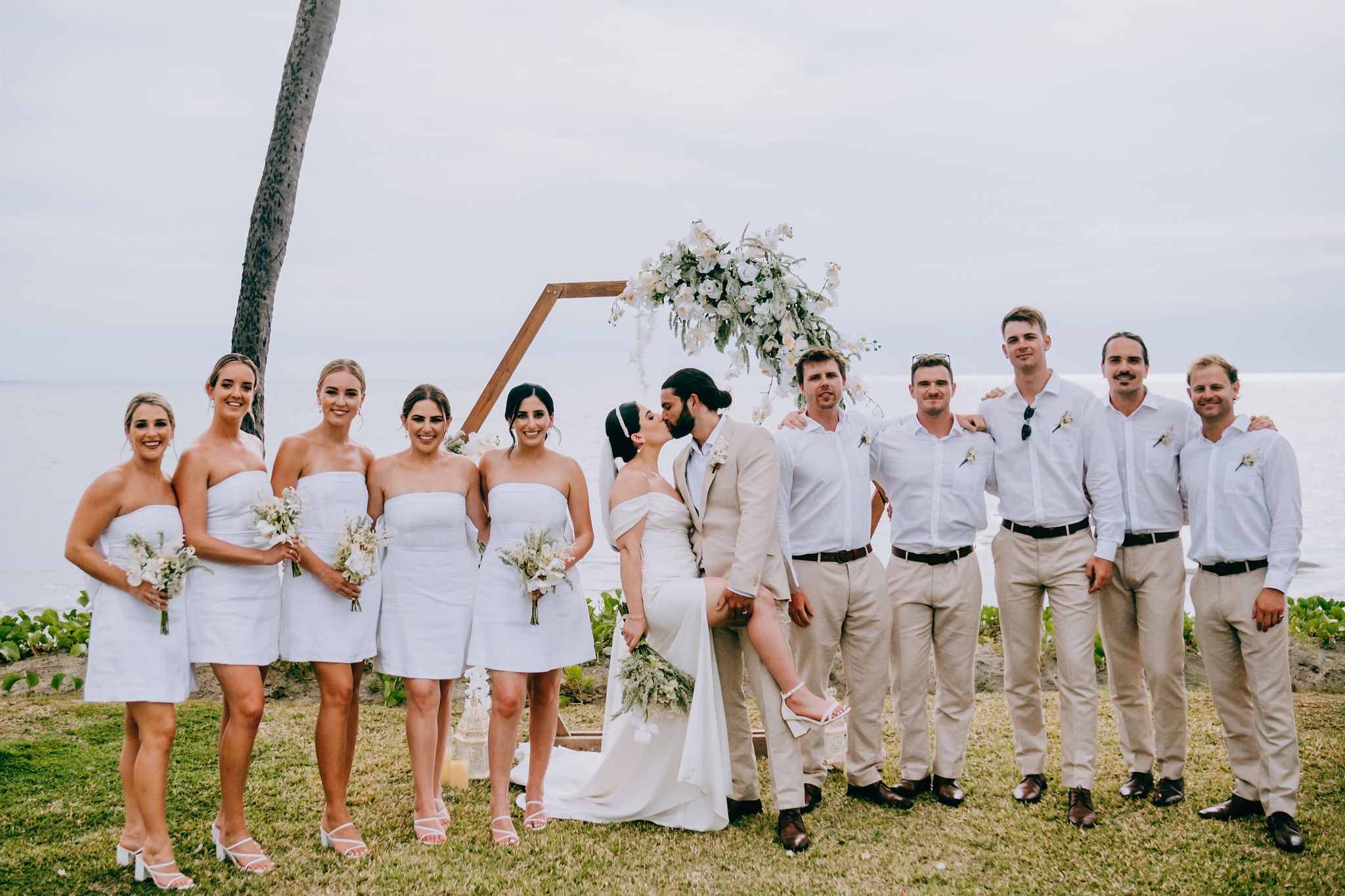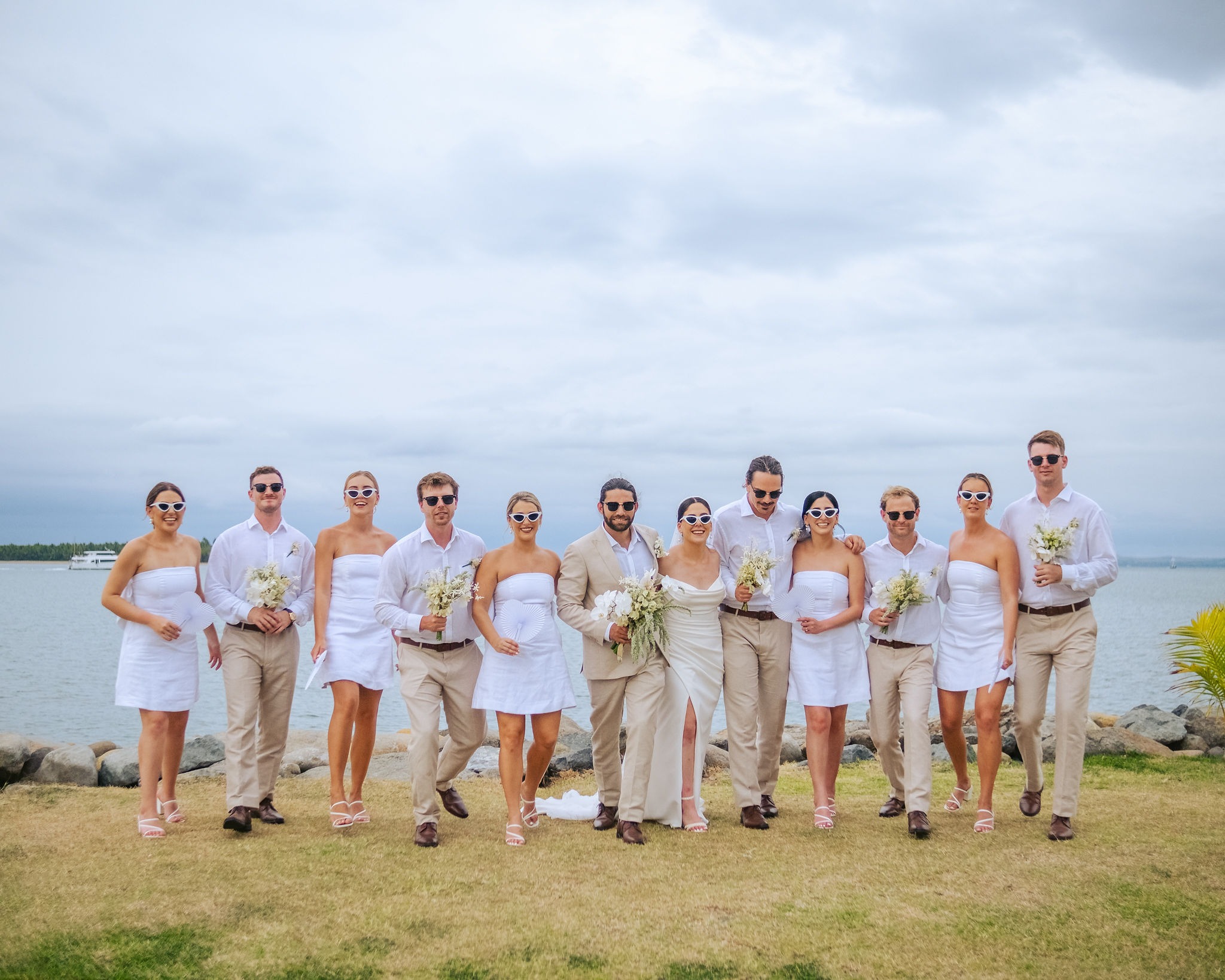 The bridesmaids dresses were from Dissh. They were gorgeous mini white linen dresses. Groom and groomsmen attire was from Cambridge clothing.