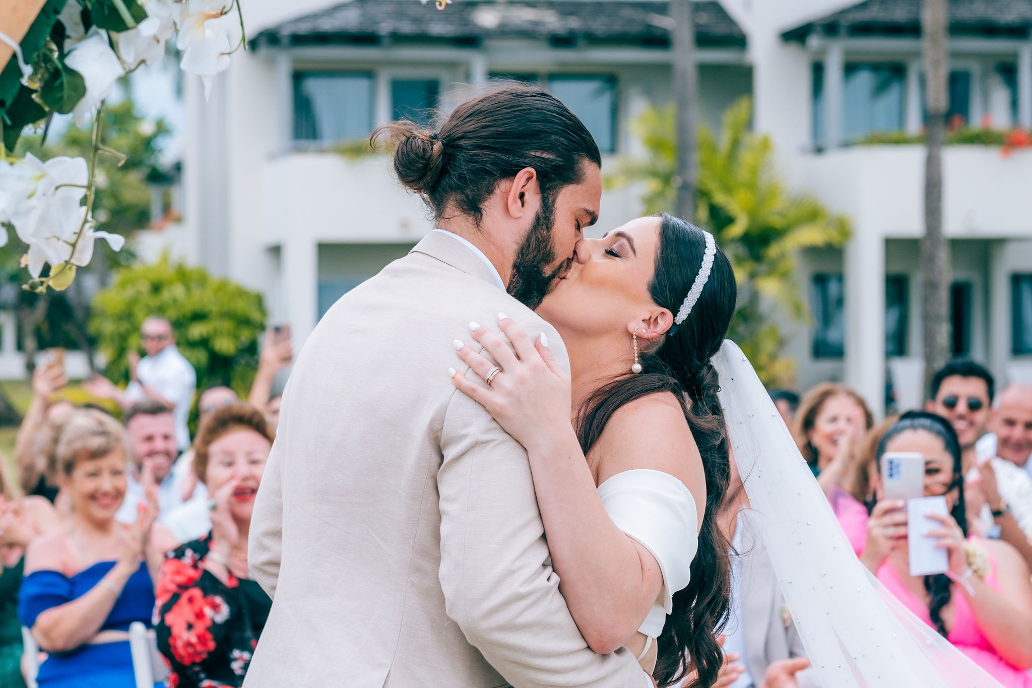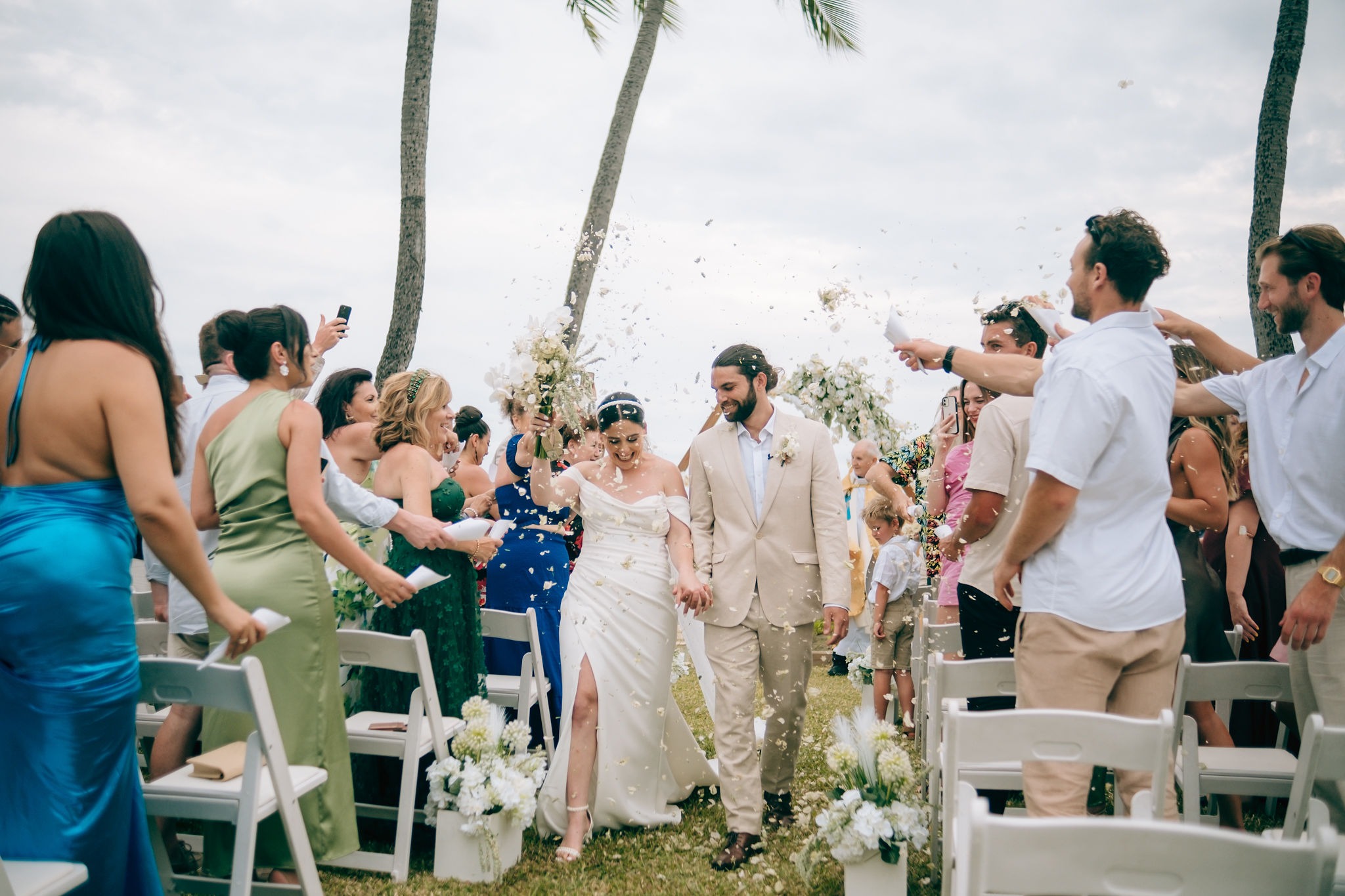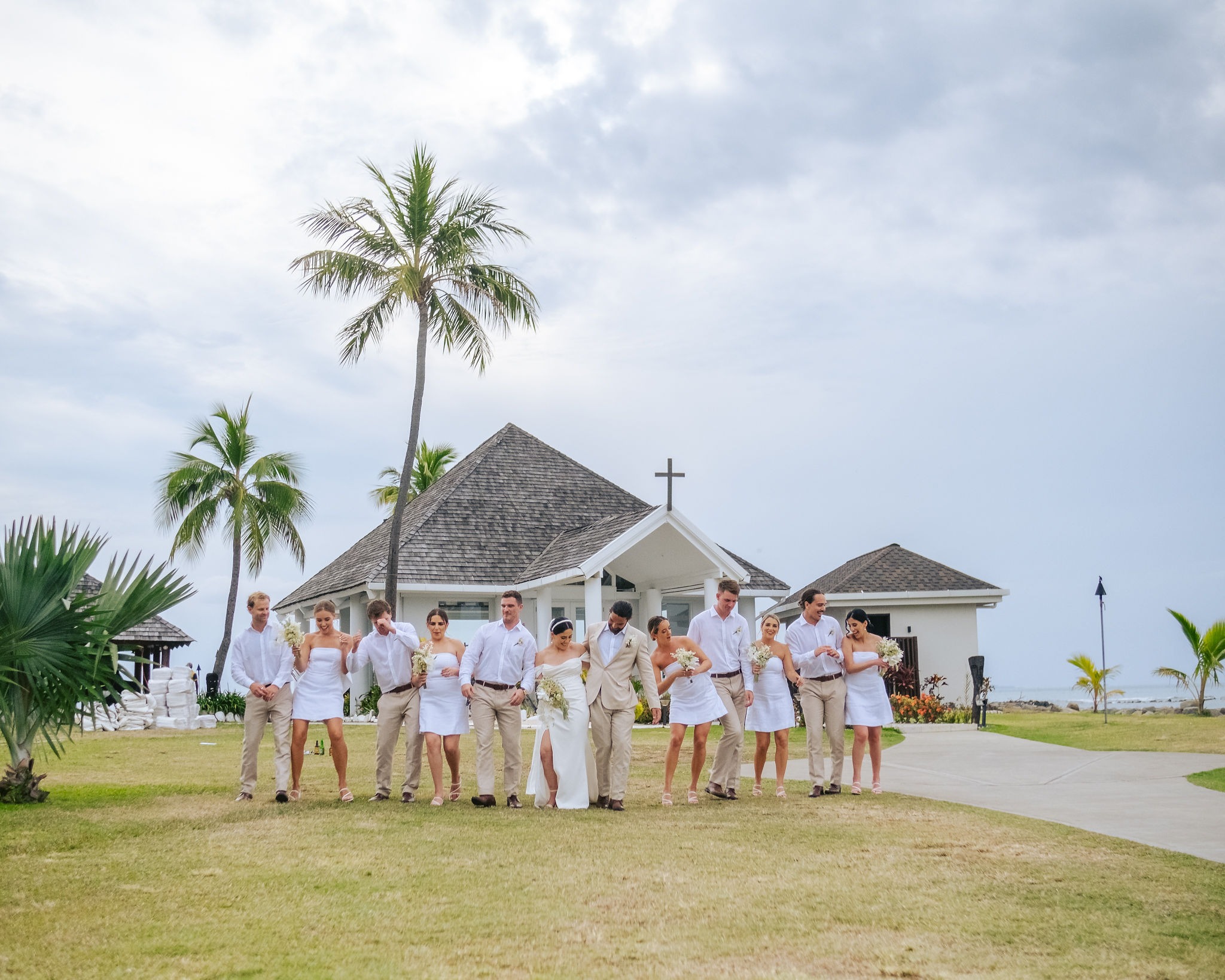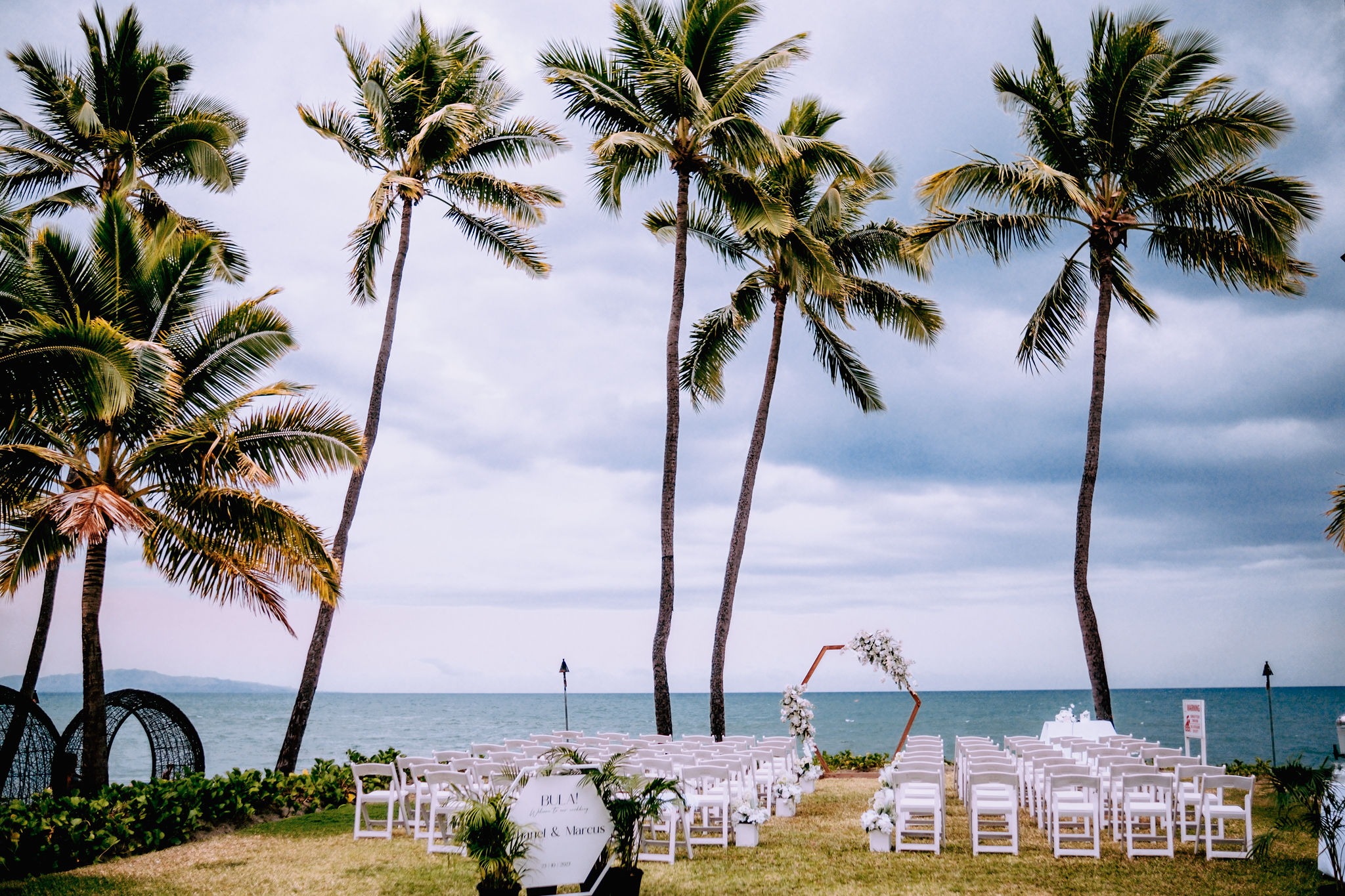 The beachfront setting of the Sheraton left us in awe, inspiring us to draw upon the essence of beachfront weddings for our own celebration. While traditional Fijian weddings are known for their vibrant tropical-colored flowers, I also envisioned an elegant wedding adorned predominantly in white.