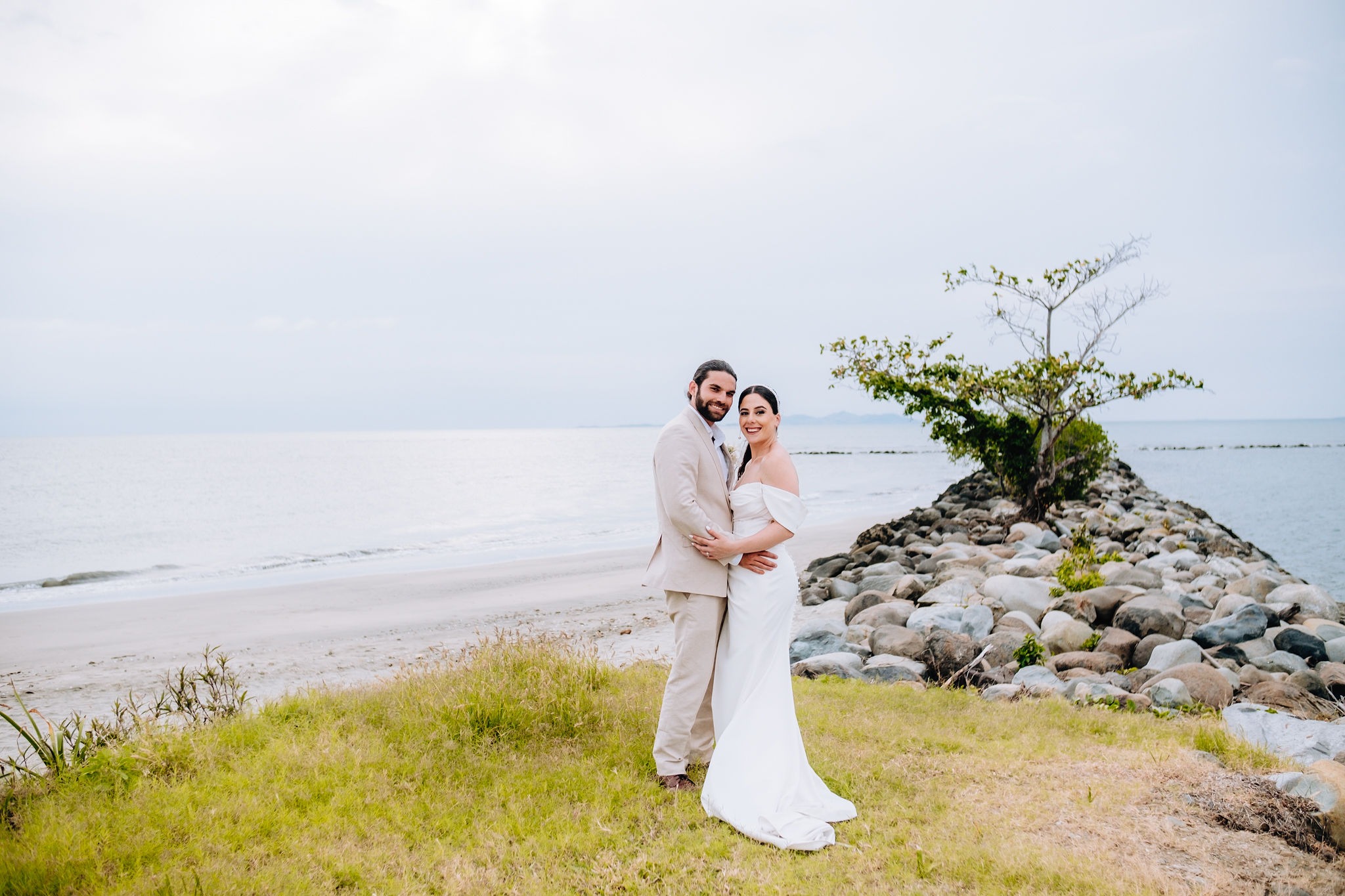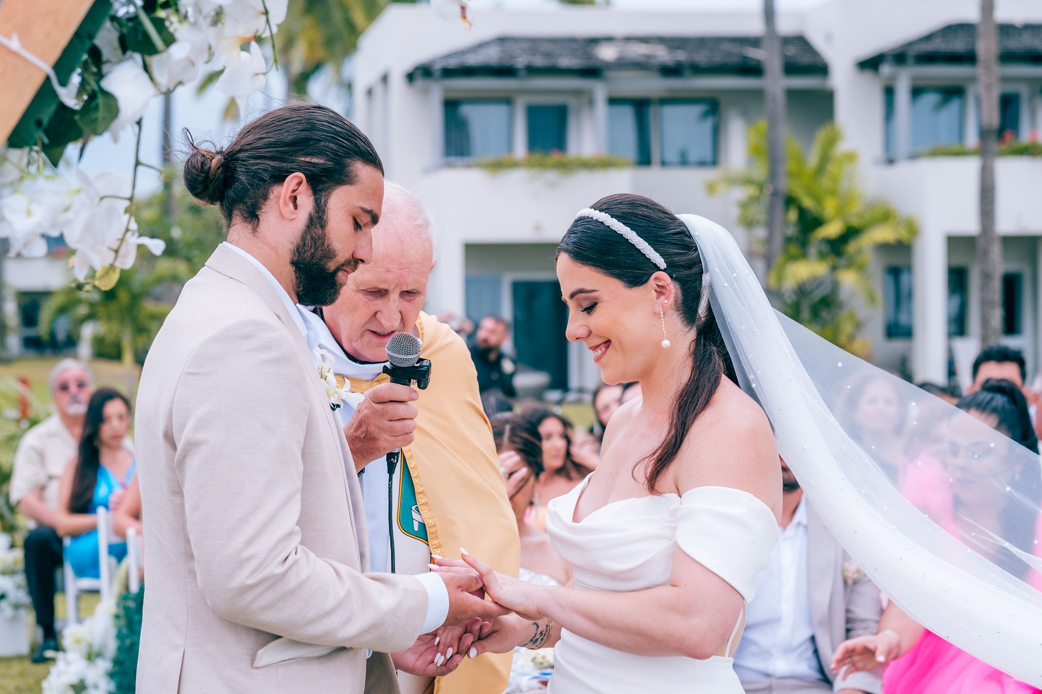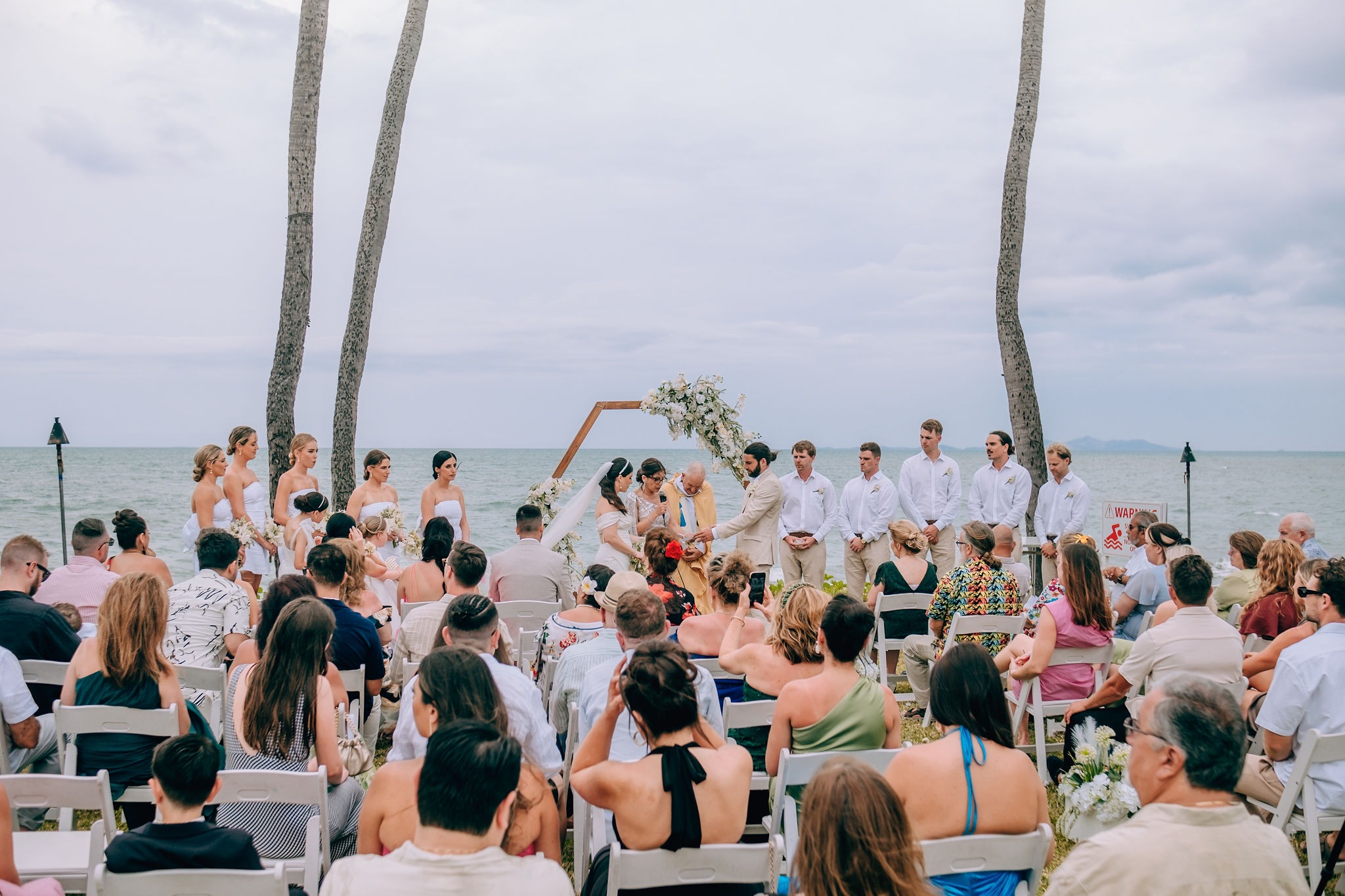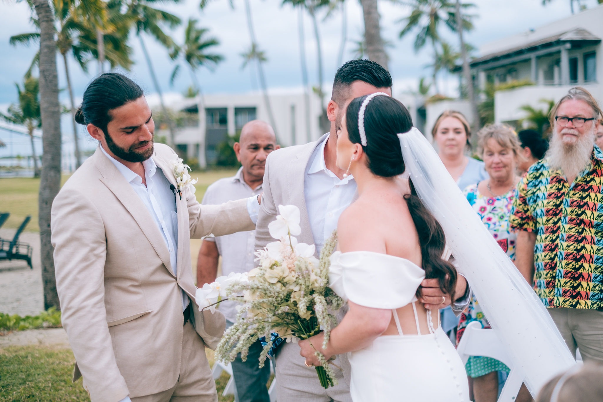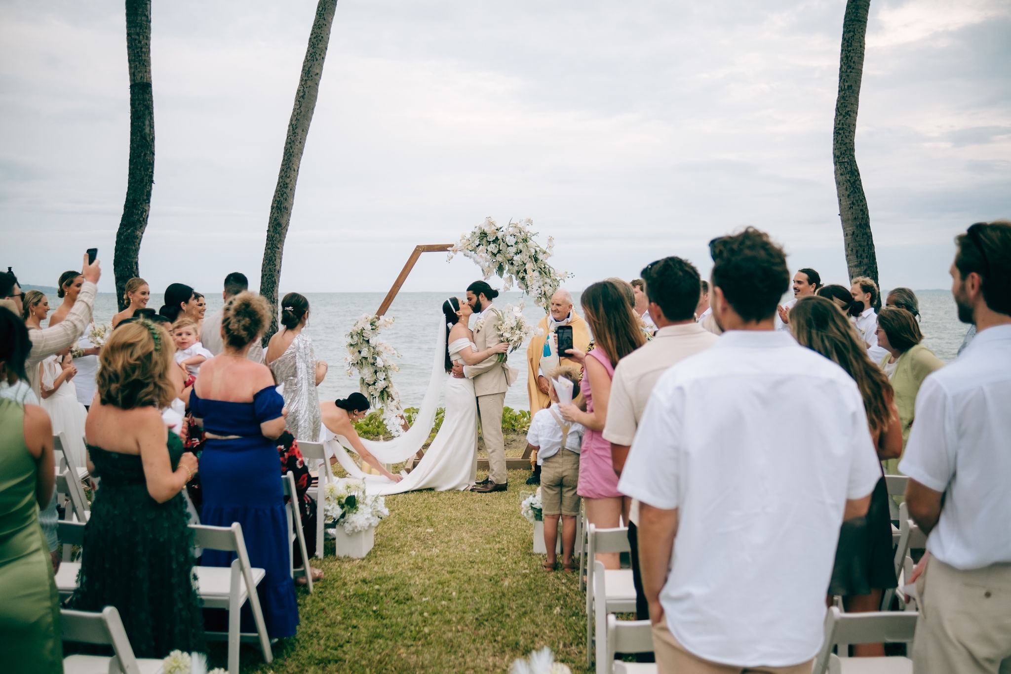 We held our ceremony on the Sheraton’s lawn, although we had initially envisioned a beachfront setting. Despite the unexpected gusts of wind on the day, our Catholic ceremony, officiated by a priest from Nadi, was simple and heartfelt, featuring standard vows, readings, and prayers.