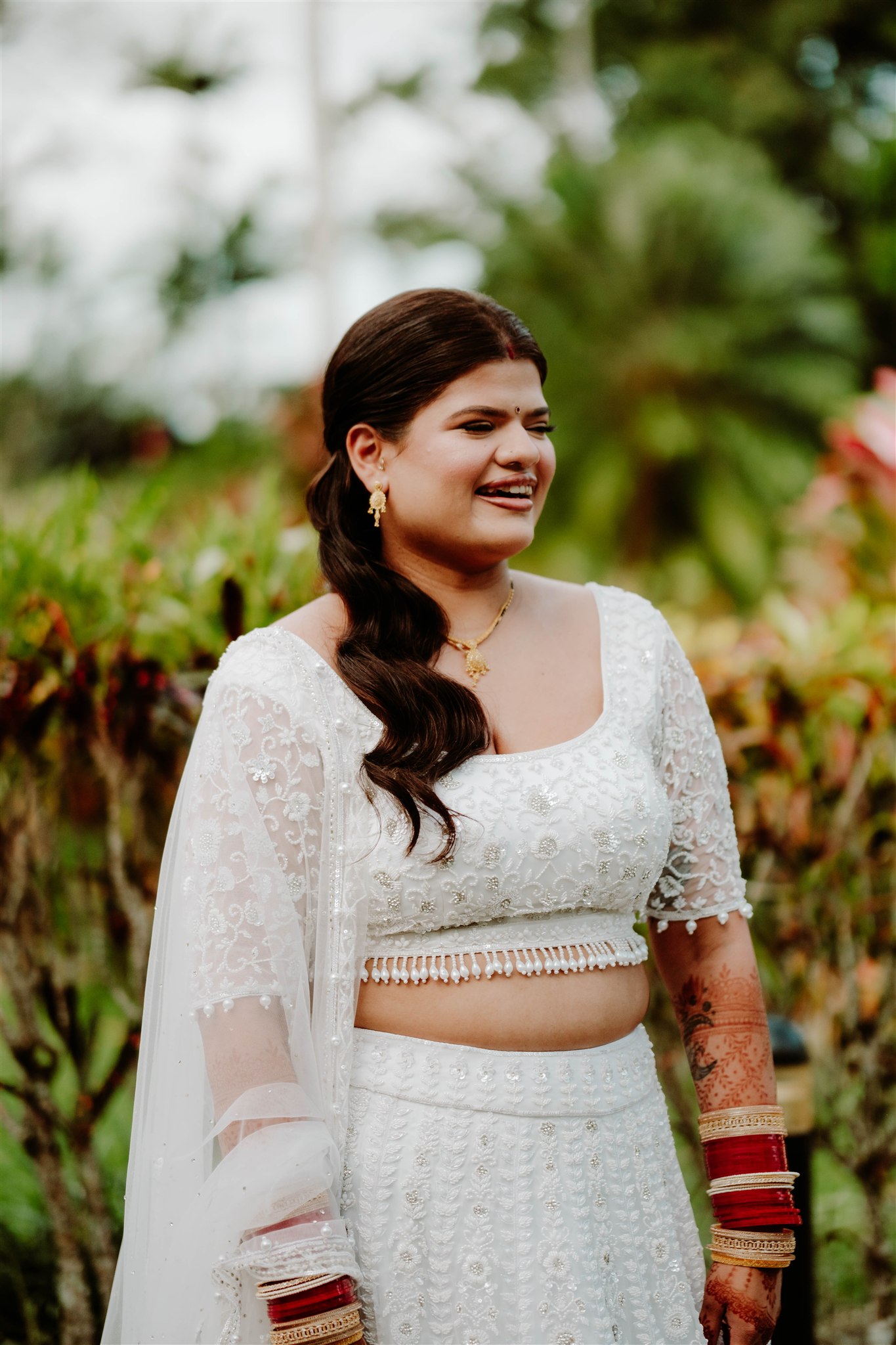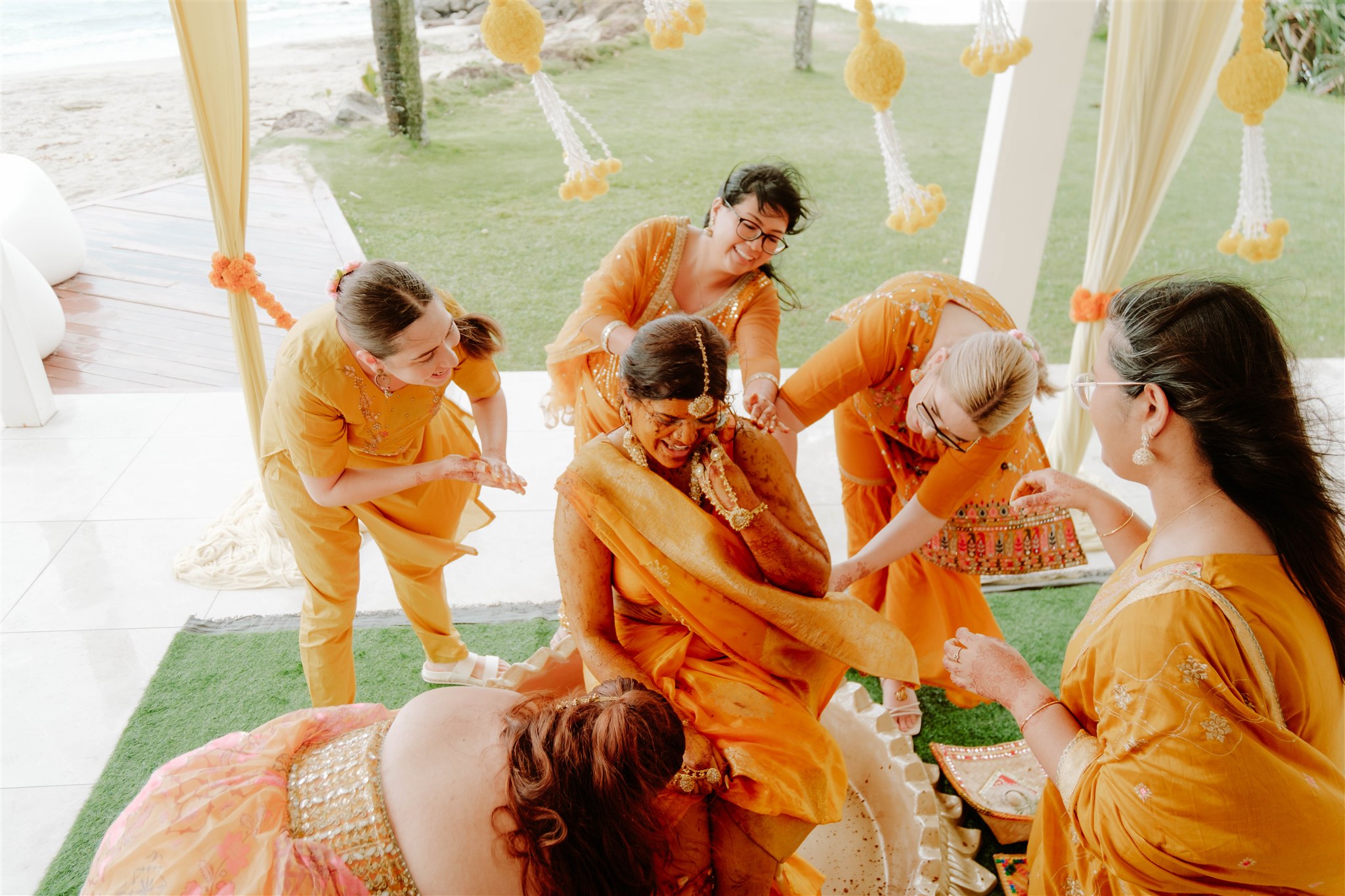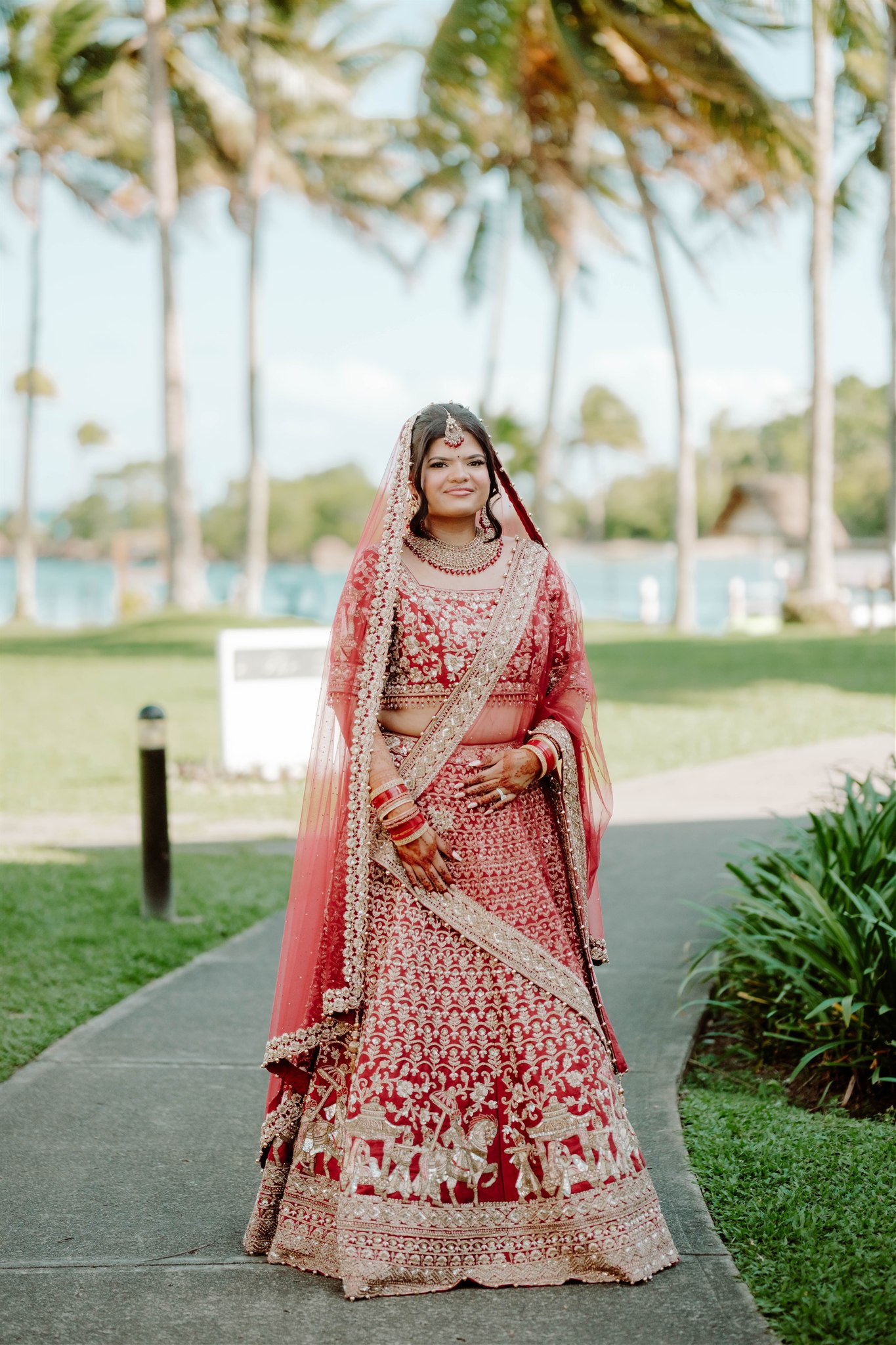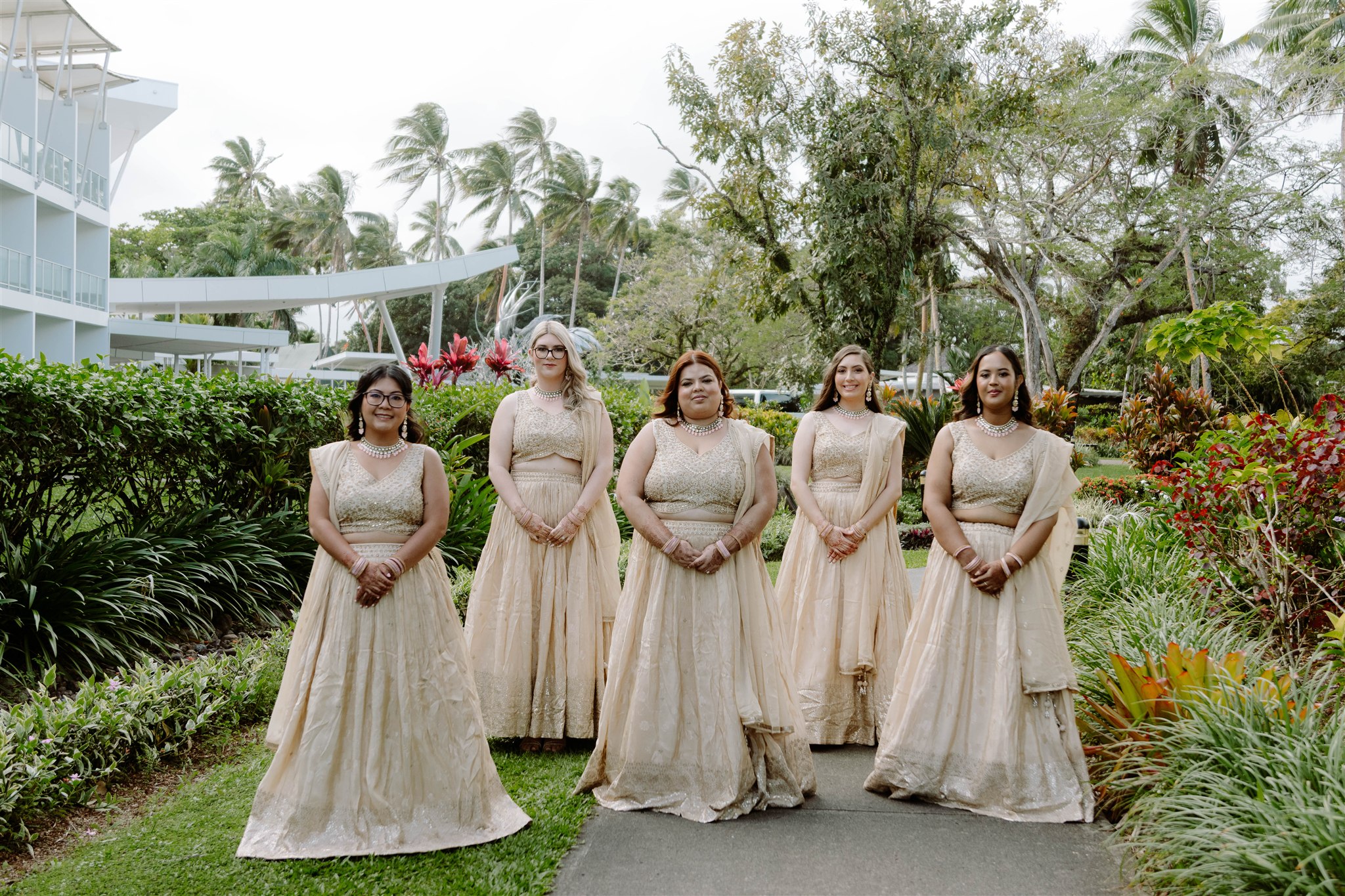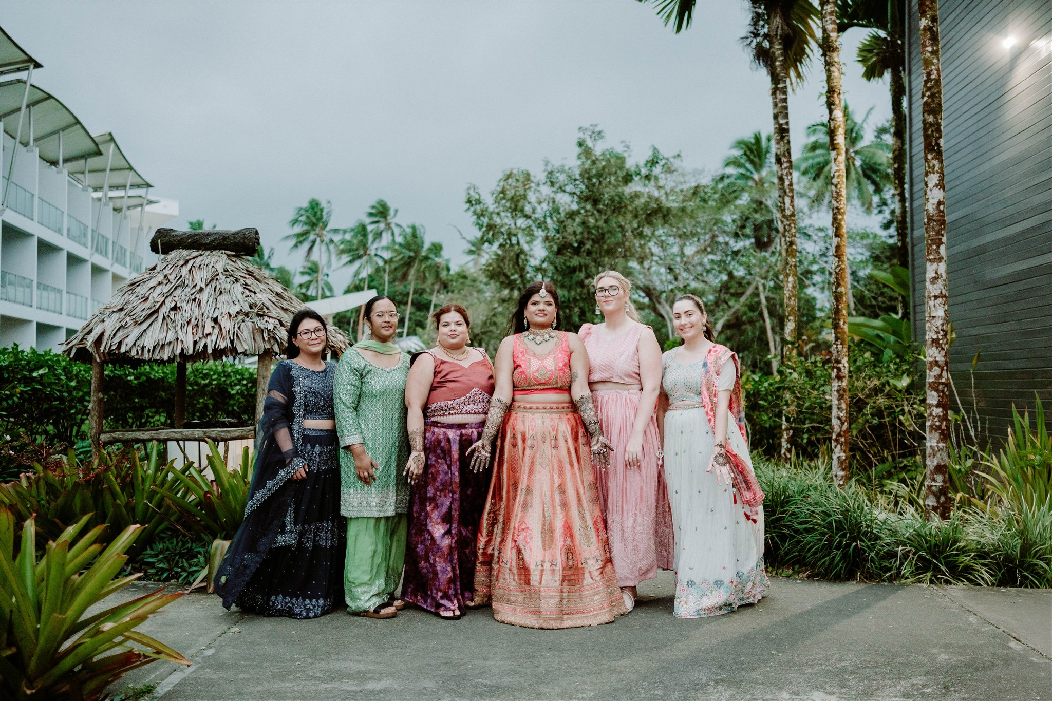 My wedding dress was custom-made by Abhishek & Radhika Gupta in Sydney and inspired by multiple Pinterest mood boards. We blended traditional elements with a strong Fijian influence, creating something truly unique—my reception dress even featured palm tree detailing. The bridesmaids’ dresses for both the wedding and reception were custom-ordered from Roop Darshan in Liverpool, Sydney.