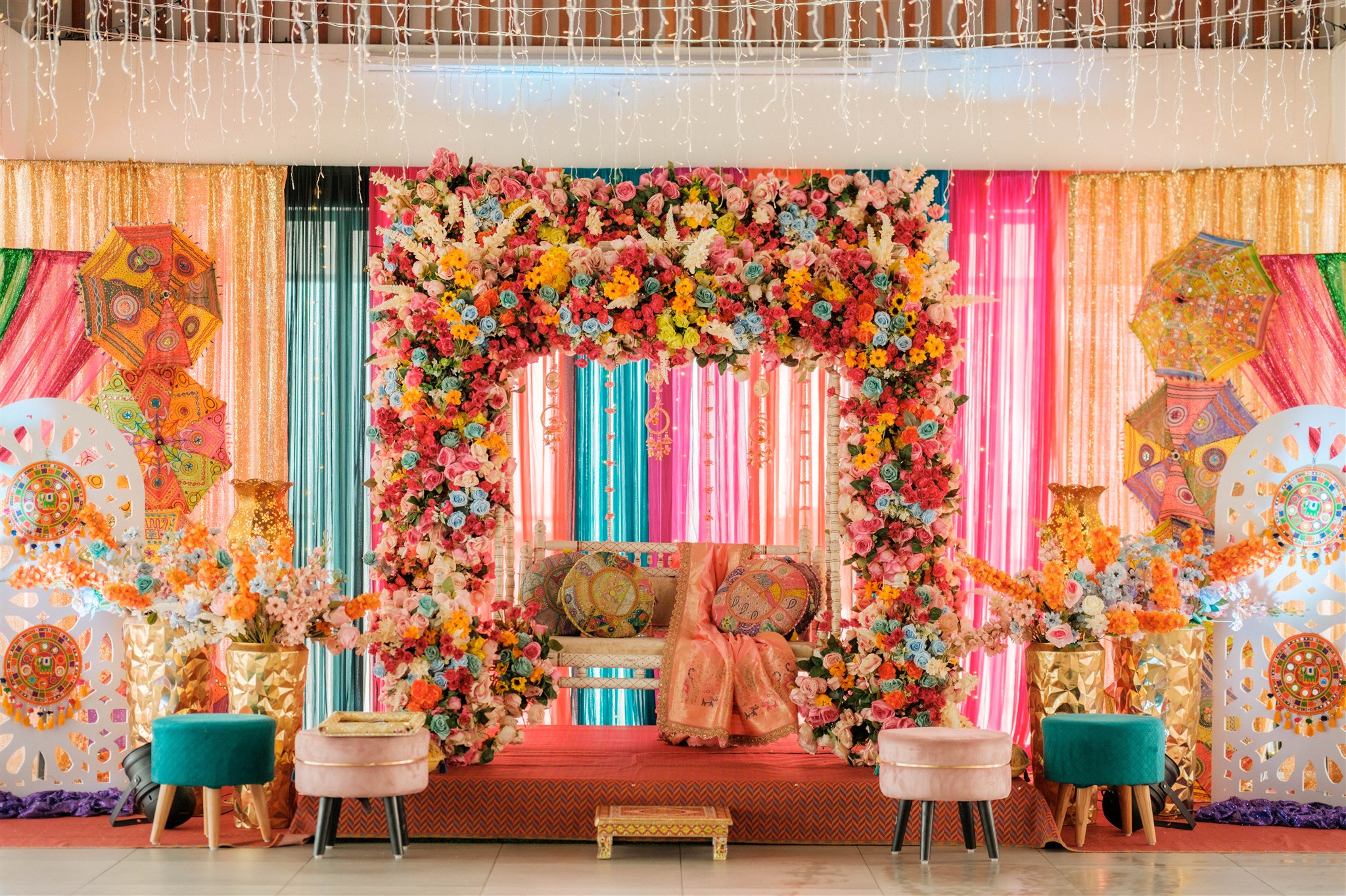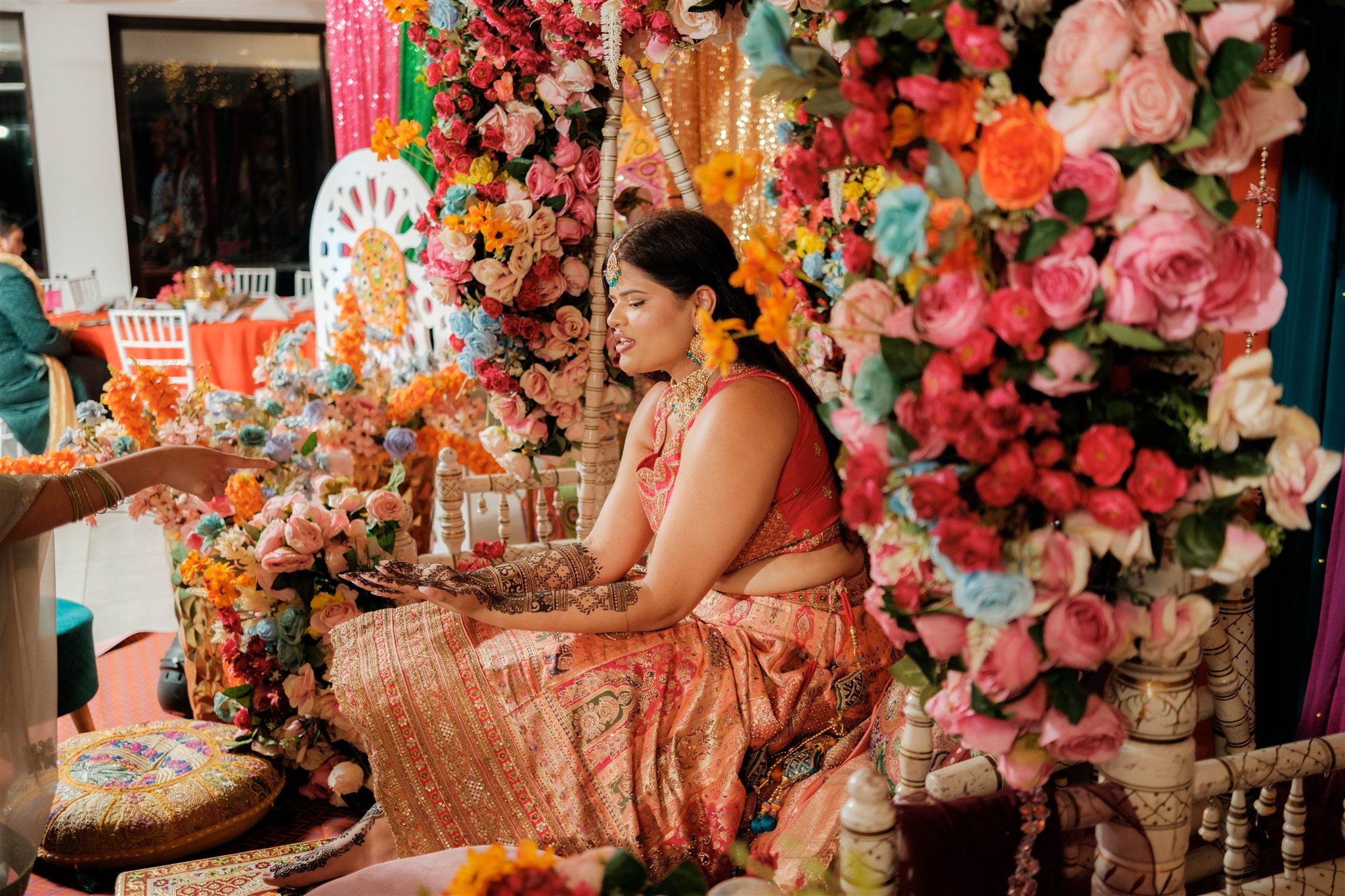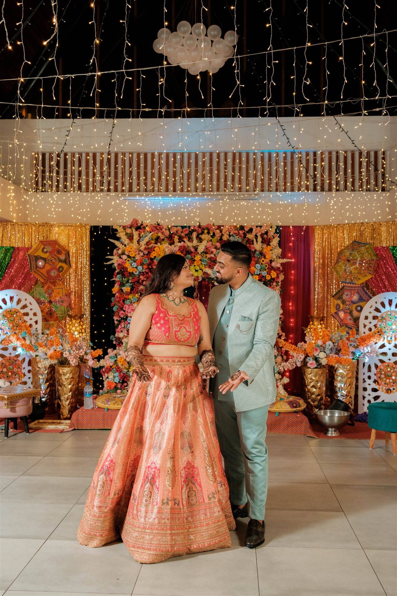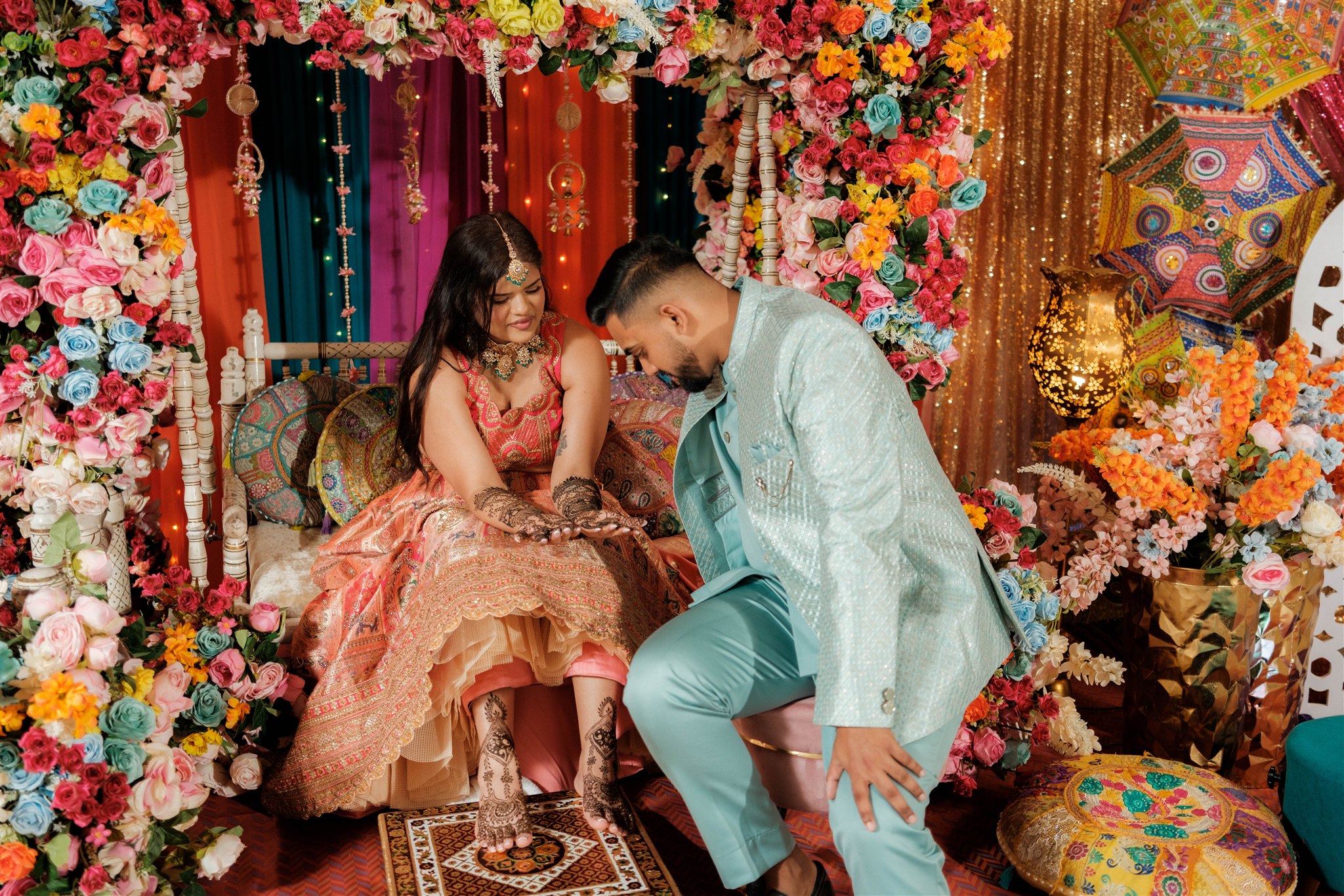 Each event was designed to feel distinct while still flowing together as one cohesive celebration. For the Mehndi, we asked Zelman to go all out—bold, colourful, and very much a “go big or go home” vibe. It was vibrant, playful, and set the perfect tone for the celebrations to come.