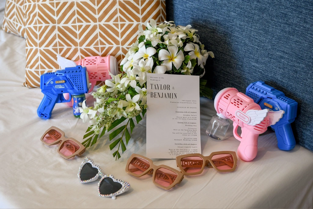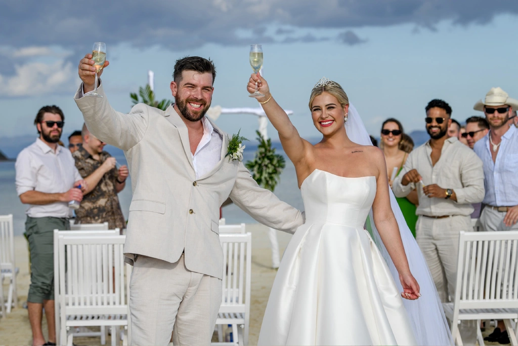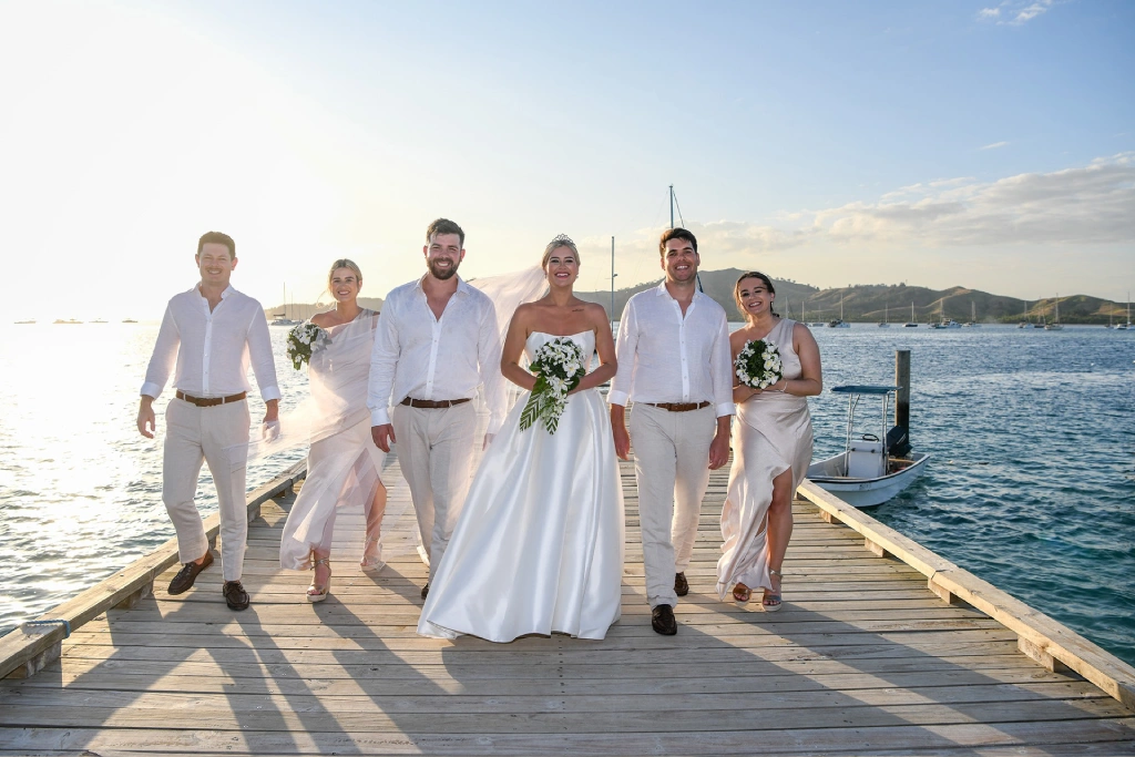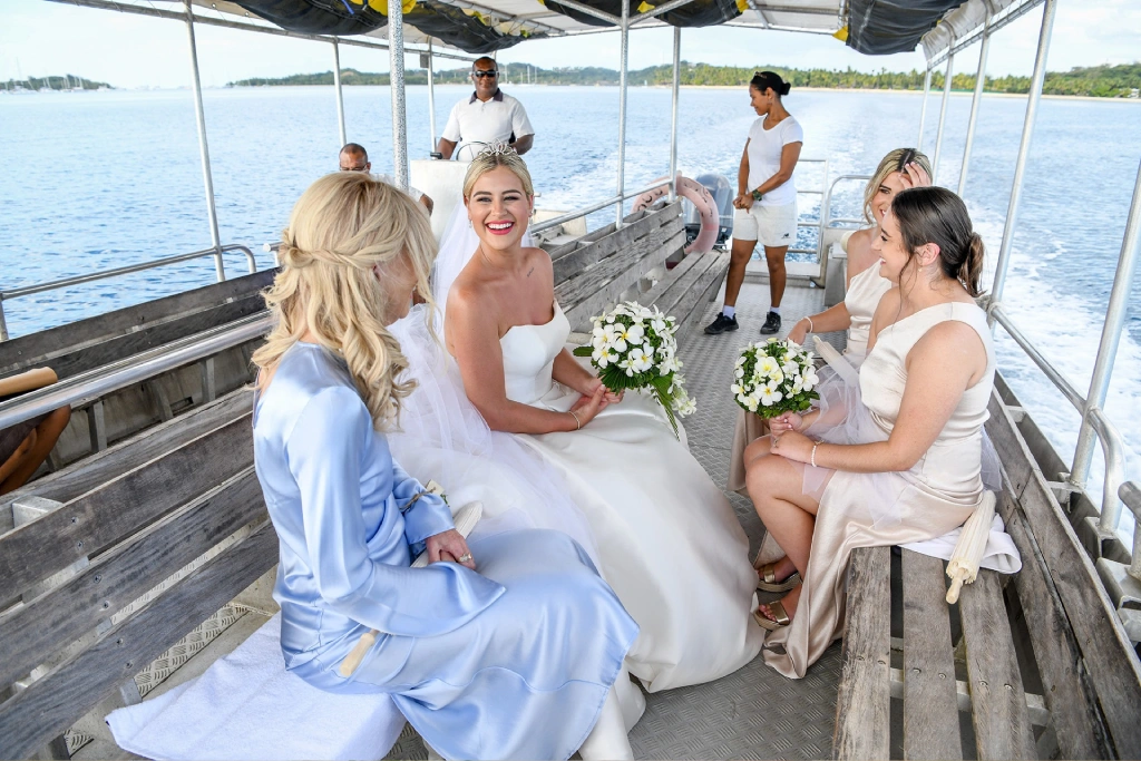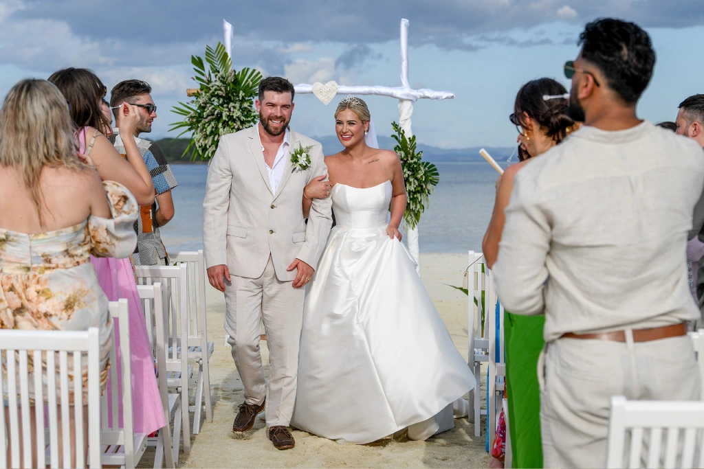 We chose Plantation Island Resort on Malolo Lailai Island as our wedding location. With several nearby resorts, it offered our guests a variety of accommodation options if they wished, and it allowed us to enjoy different dining experiences. We couldn’t be happier with our choice! The sandbank ceremony at Plantation Island Resort provided the most magical setting for our vows.