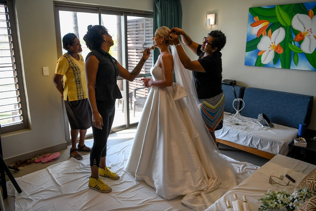 My dress was from Alma J in Auckland. It might not have been the most practical choice for a Fiji wedding, but when you find “the one,” you just know!